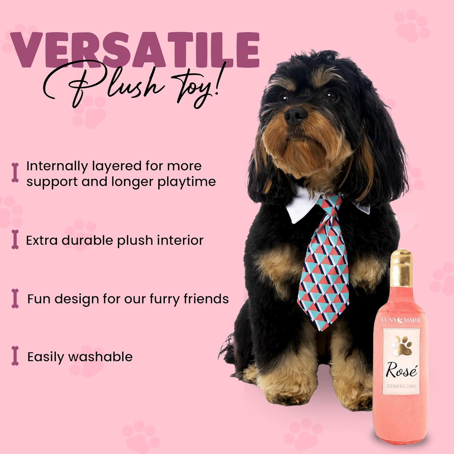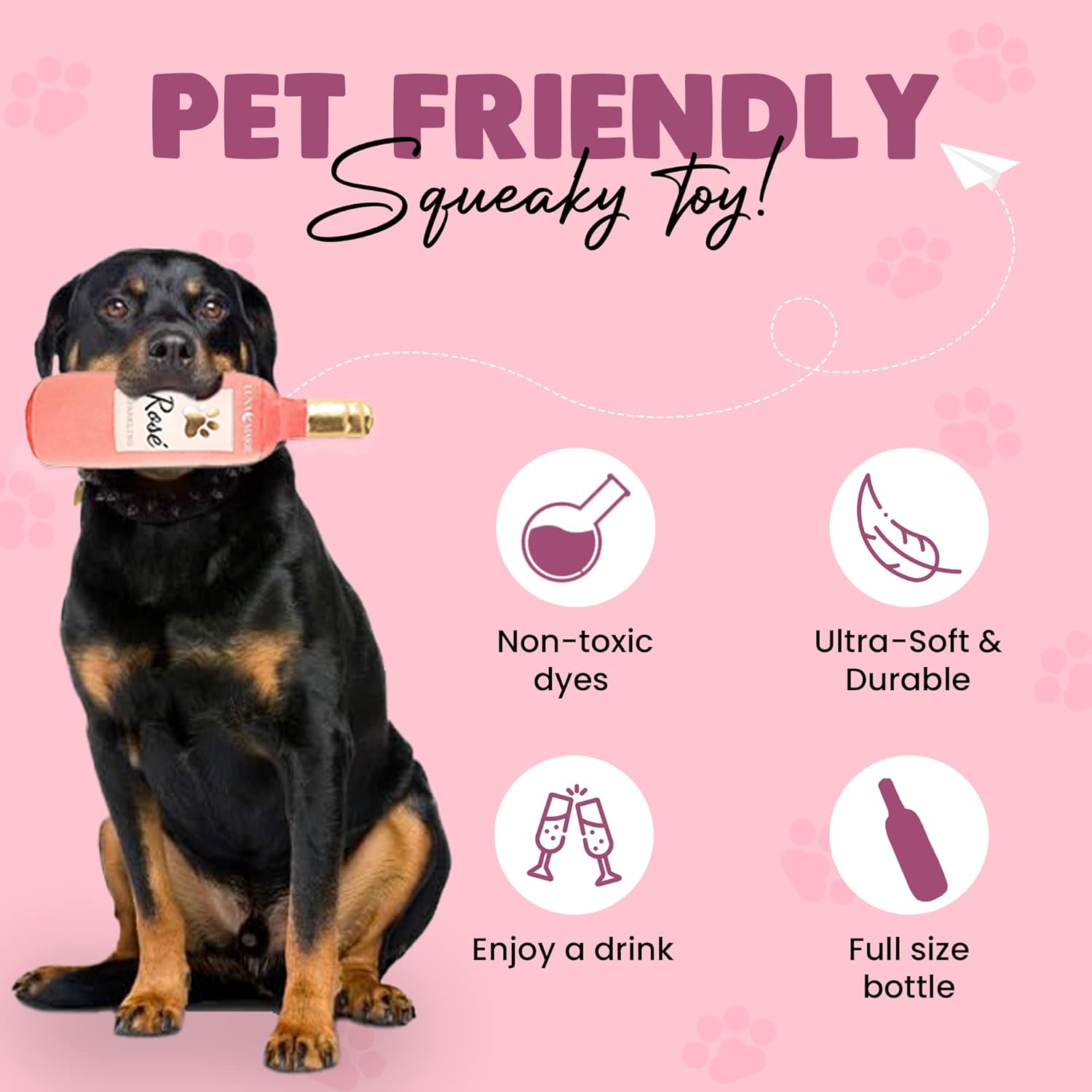 Vino espumoso para tu mascota : disfruta de nuestro adorable juguete de vino de peluche de rosa brillante con tu mejor amigo. Beber en redes sociales nunca ha sido más divertido, y tu peludo ahora puede unirse a ti con su propio juguete de bebida. ¿Alguien dijo Happy Hour? !