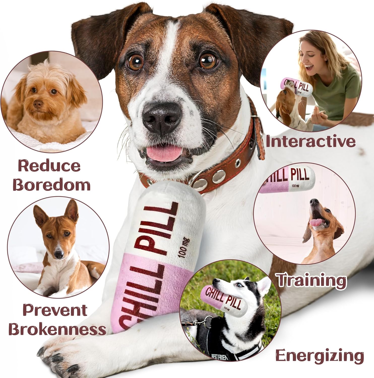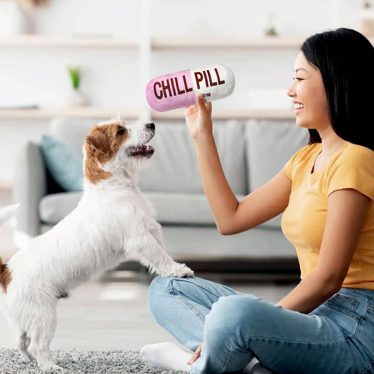 Divertido diseño de pastillas relajantes: este divertido juguete para mascotas imita la forma de una pastilla, lo que le da un toque único al tiempo de juego de tu mascota. Este juguete para mascotas tiene un chirriador en el interior que fomenta la diversión interactiva mientras tu gato o perro juega. El sonido chirriante despierta su curiosidad, lo mantiene entretenido durante horas y lo ayuda a enamorarse de su nuevo juguete.
