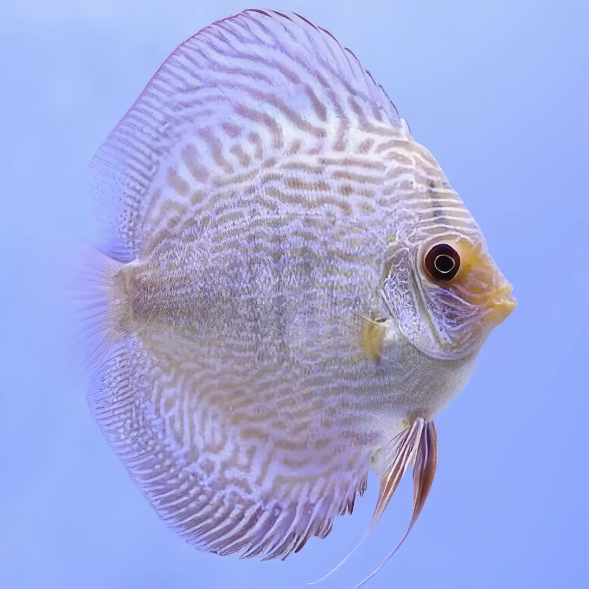 El Pez Disco Blue Scorpion Premium es un pez majestuoso con un patrón azul hipnótico. Perfecto para acuarios bien mantenidos y con compañeros pacíficos.