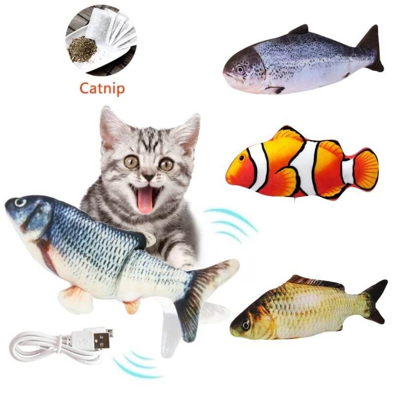 Juguete divertidos y llamativos en forma de Pez con movimiento para gatos. Ayuda fomenta la actividad física de tu gato.