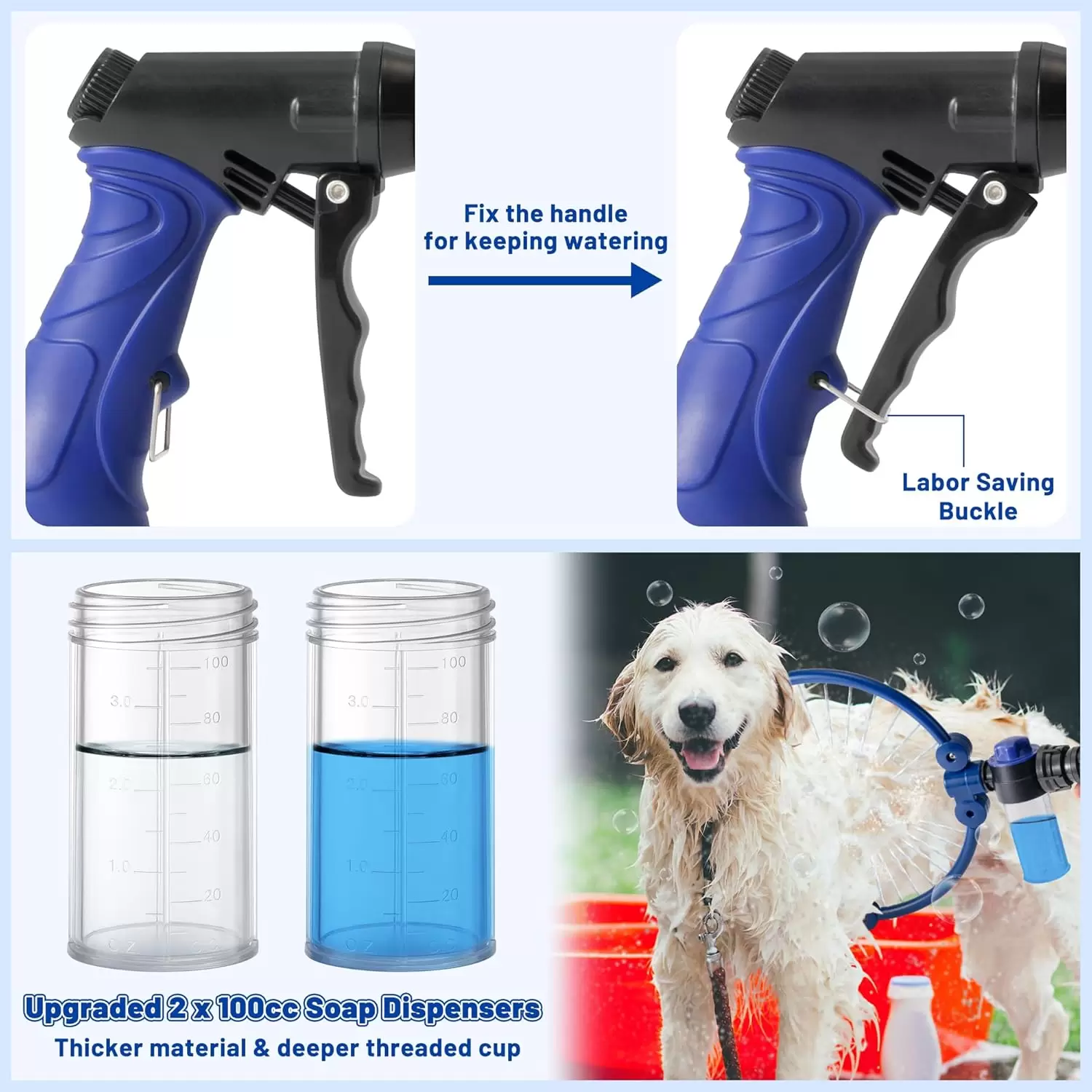 Pistola de agua para perros con dispensador de jabón doble. La herramienta de lavado ajustable a 360° es ideal para un aseo completo y profesional sin esfuerzo.