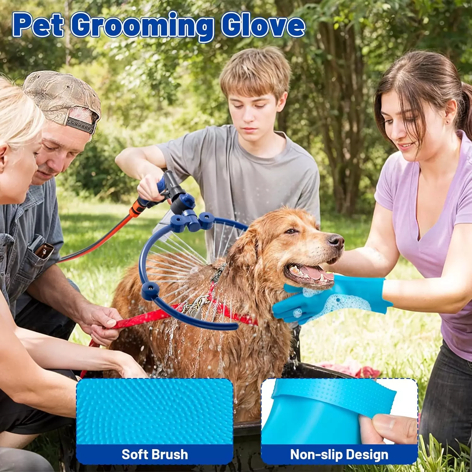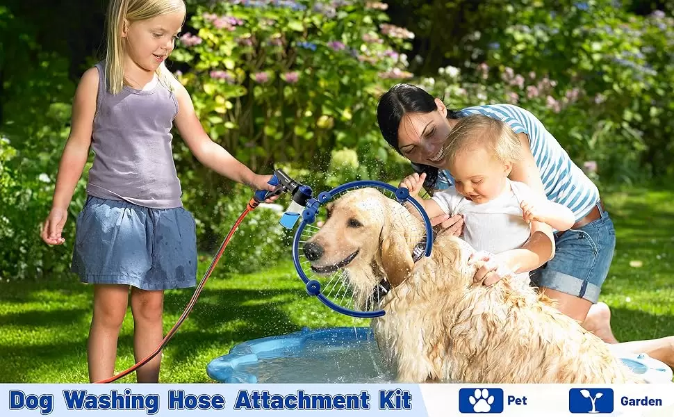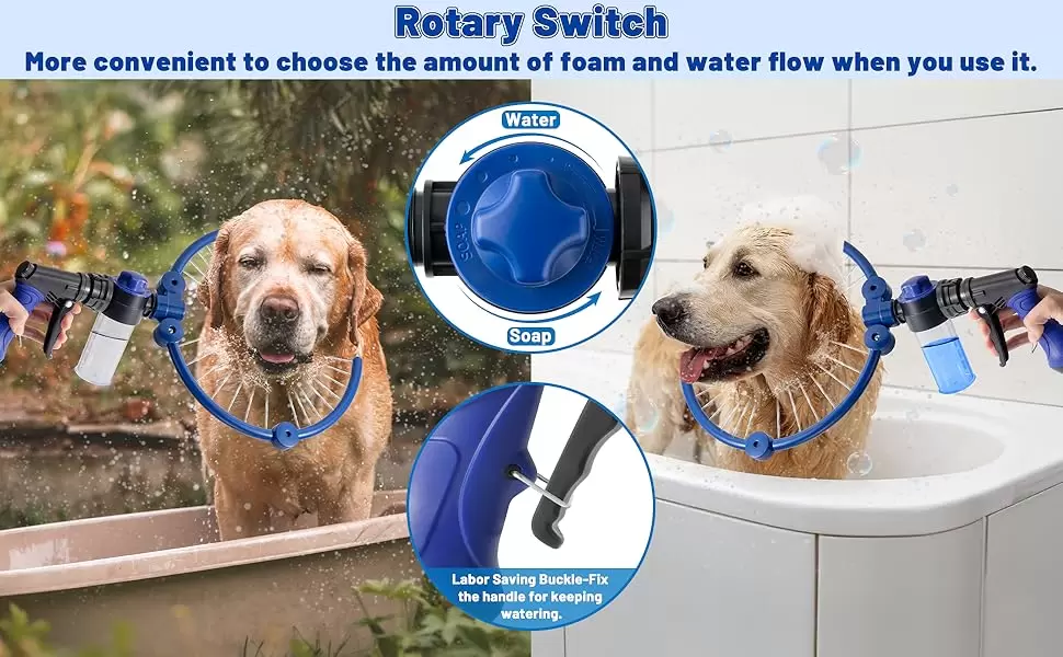 Boquilla ajustable de 360 grados: con boquilla de diseño curvado de 360 grados, puede cubrir completamente a perros de todos los tamaños y adaptarse mejor a las curvas del cuerpo de la mascota, puede humedecer completa, rápida y uniformemente el cabello de todo el cuerpo de la mascota para una limpieza más completa. El diseño de boquilla estrecha y vertical específica puede proporcionar un efecto de limpieza suave y un masaje suave, limpiando las piezas sensibles sin presión para evitar la resistencia de las mascotas. También es compatible con una sola mano para un tiempo de baño más rápido y fácil.