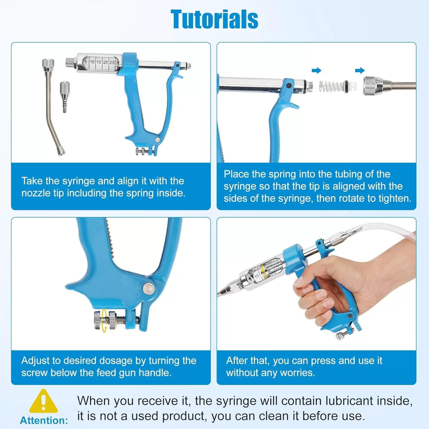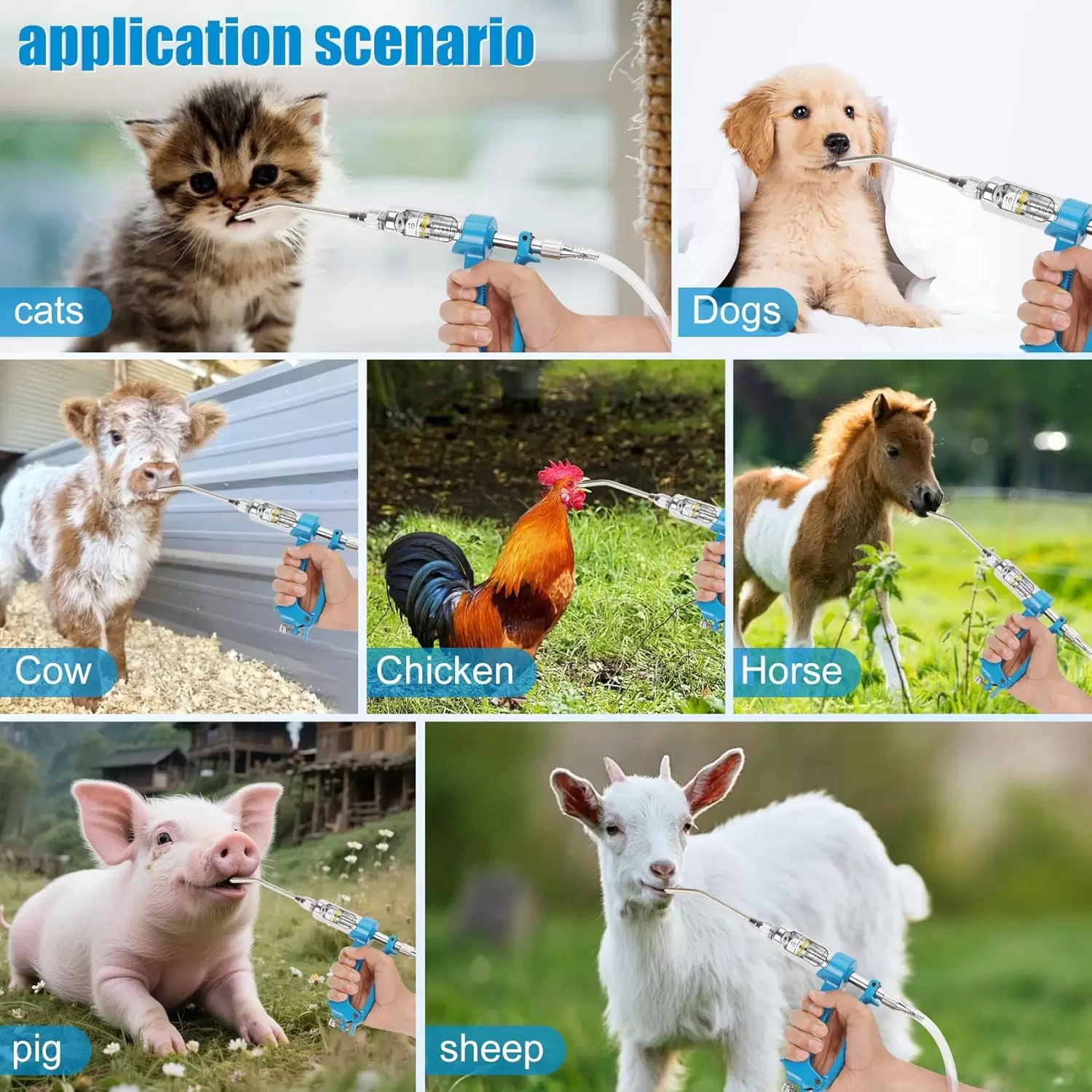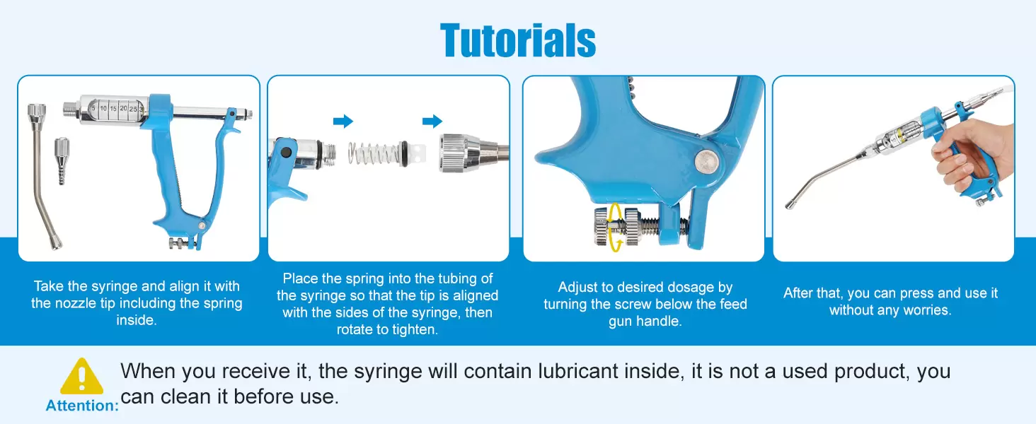 Jeringa de ganado porque la solución de ducha se inyecta en el cuerpo del animal y luego se toma oralmente por el animal, que es más seguro que los métodos forzados