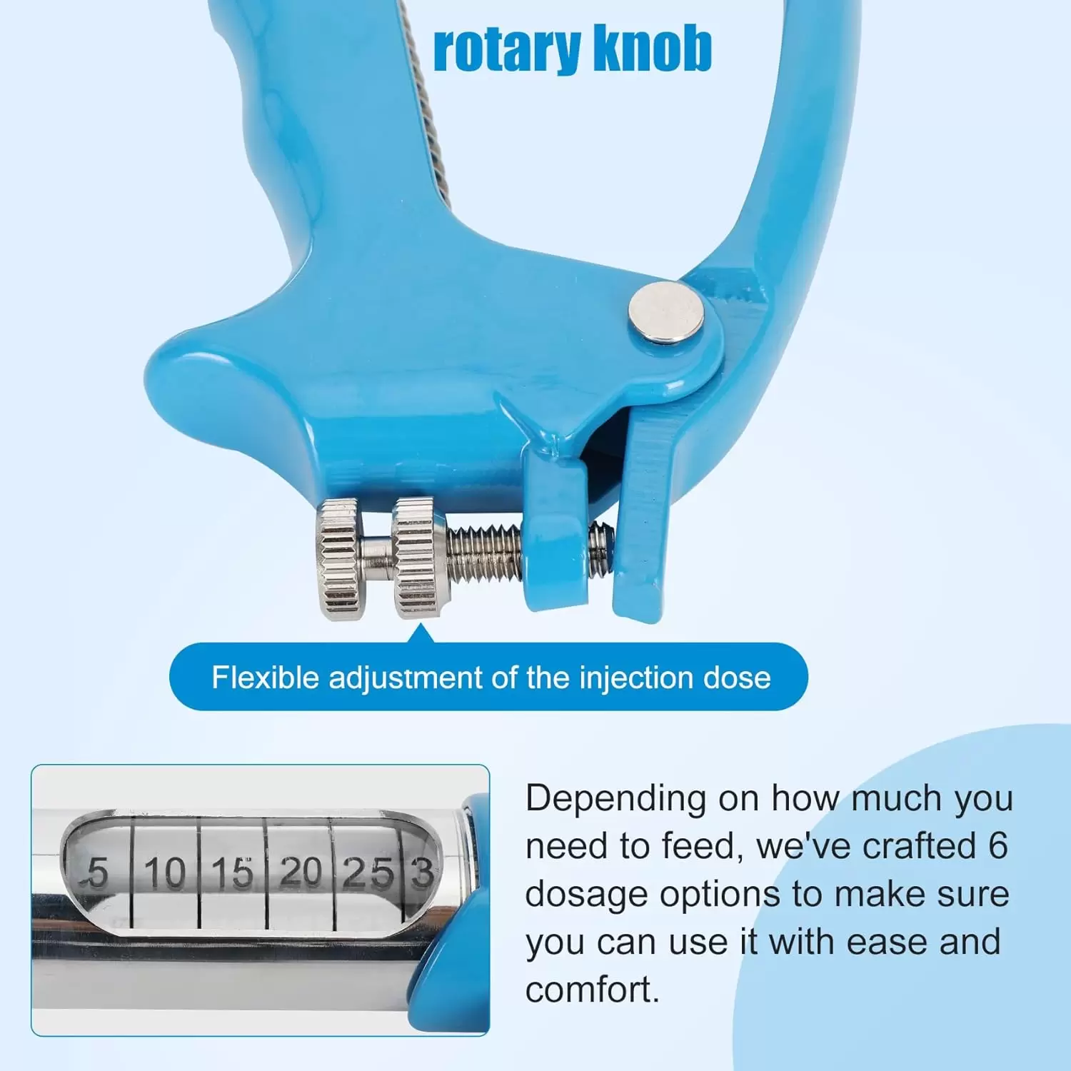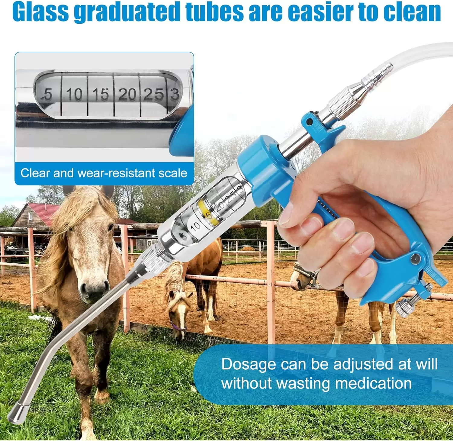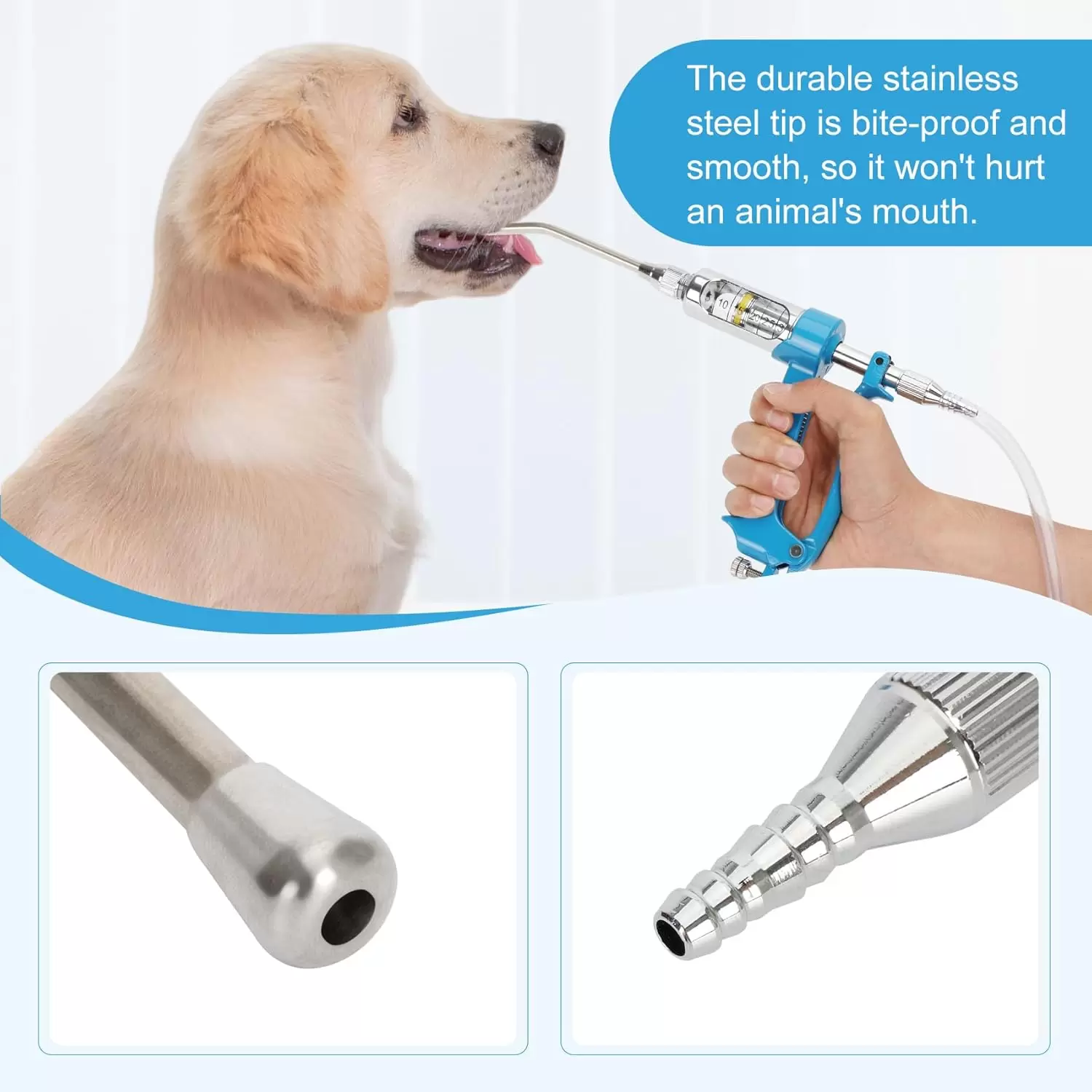 Jeringa de ganado porque la solución de ducha se inyecta en el cuerpo del animal y luego se toma oralmente por el animal, que es más seguro que los métodos forzados