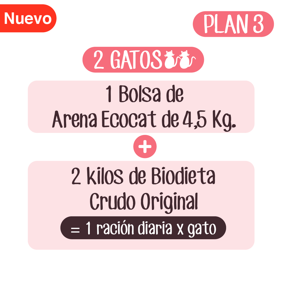 Plan Crudo Original 3: Arena Ecocat 4,45 Kg.+ 2 Biodieta crudo original 1000 g. aprox.