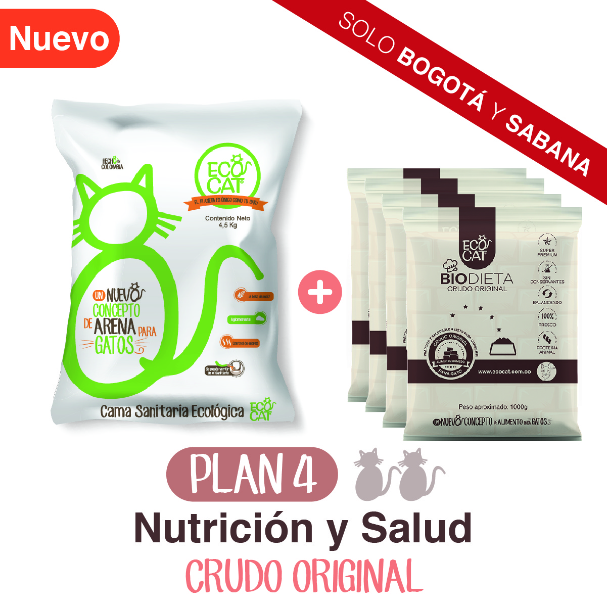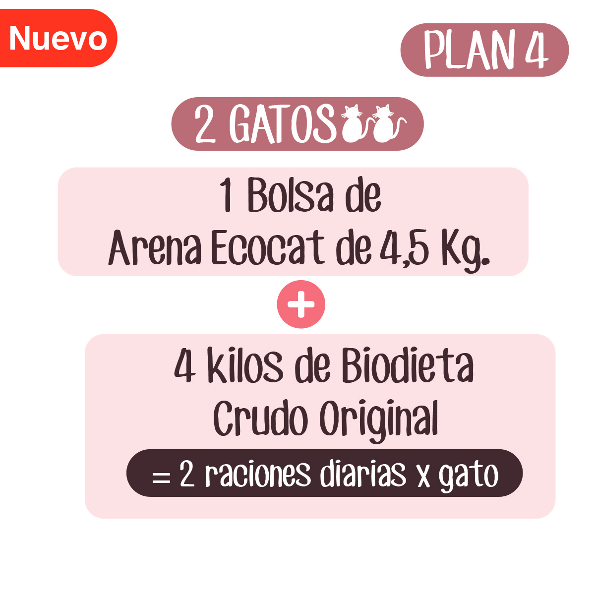 Plan Crudo Original 4: Arena Ecocat 4,45 Kg.+ 4 Biodieta crudo original 1000 g. aprox.