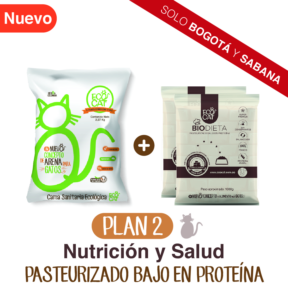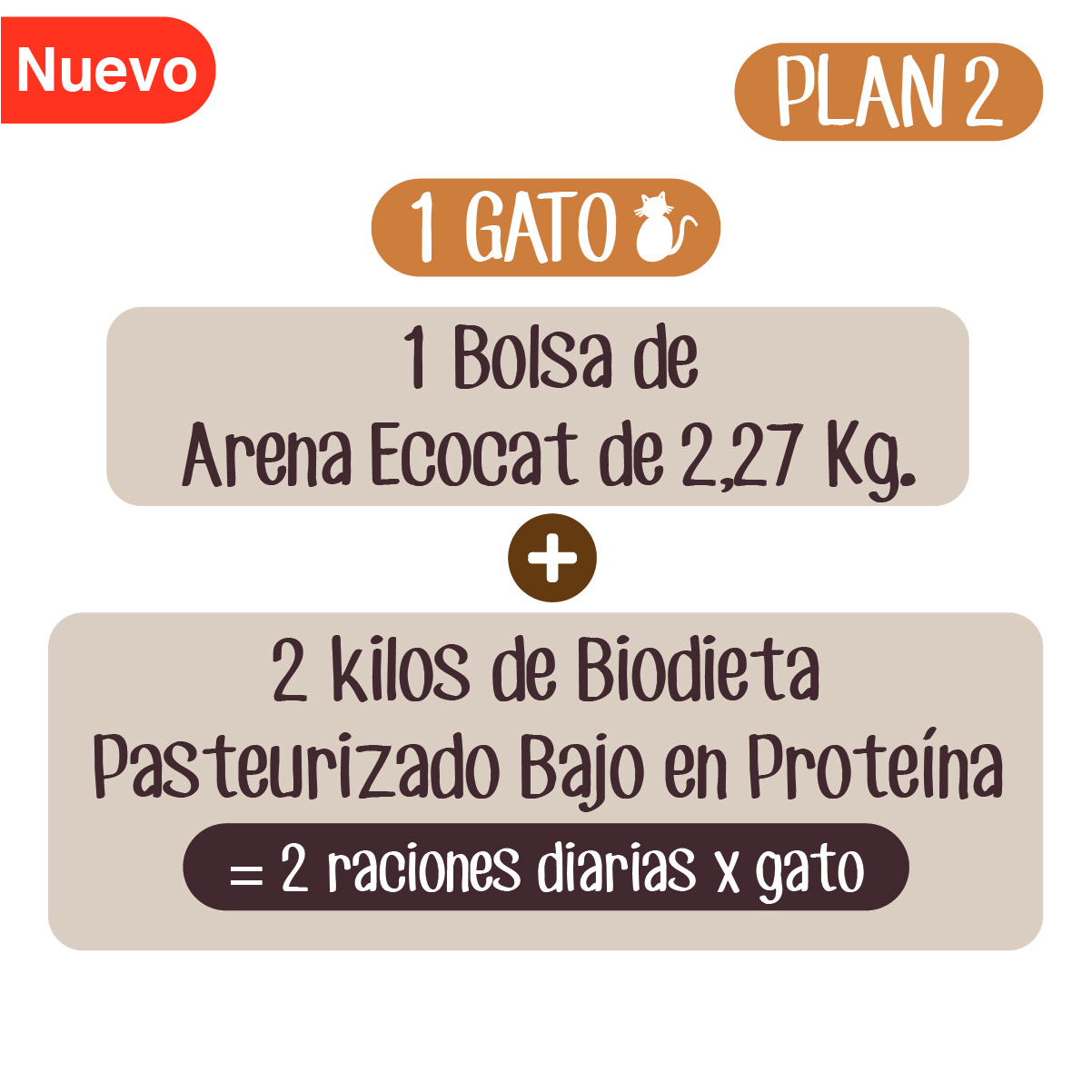 Plan Cuidado Renal 2: Arena Ecocat 2,27 Kg.+ 2 Biodieta pasteurizado bajo en proteína 1000 g. aprox.