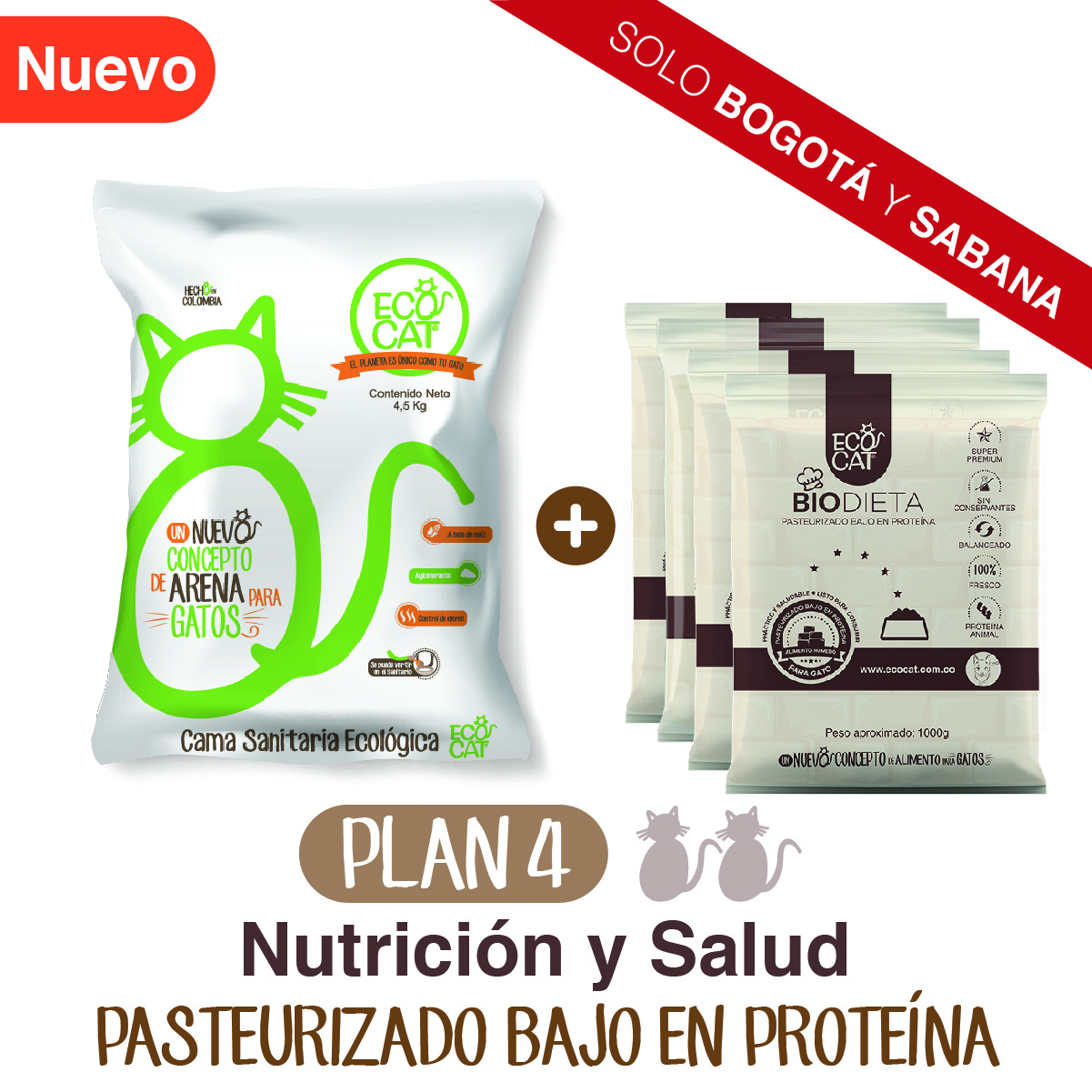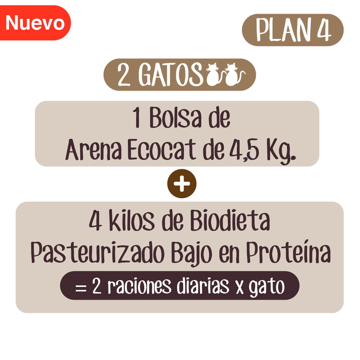 Plan Cuidado Renal 4: Arena Ecocat 4,5 Kg.+ 4 Biodieta pasteurizado bajo en proteína 1000 g. aprox.