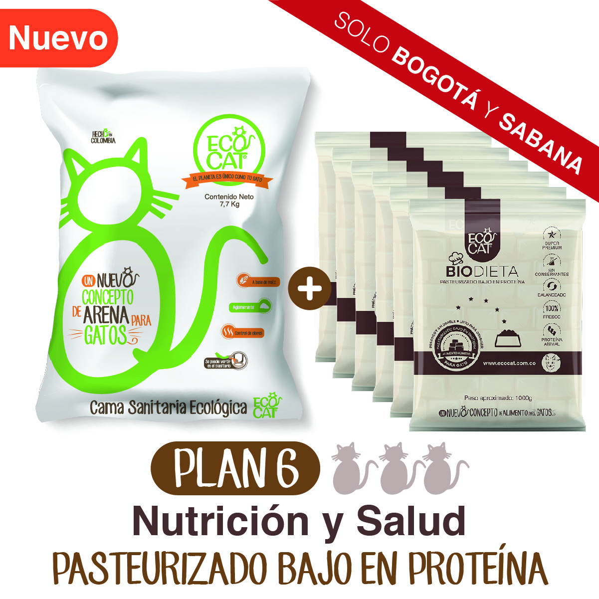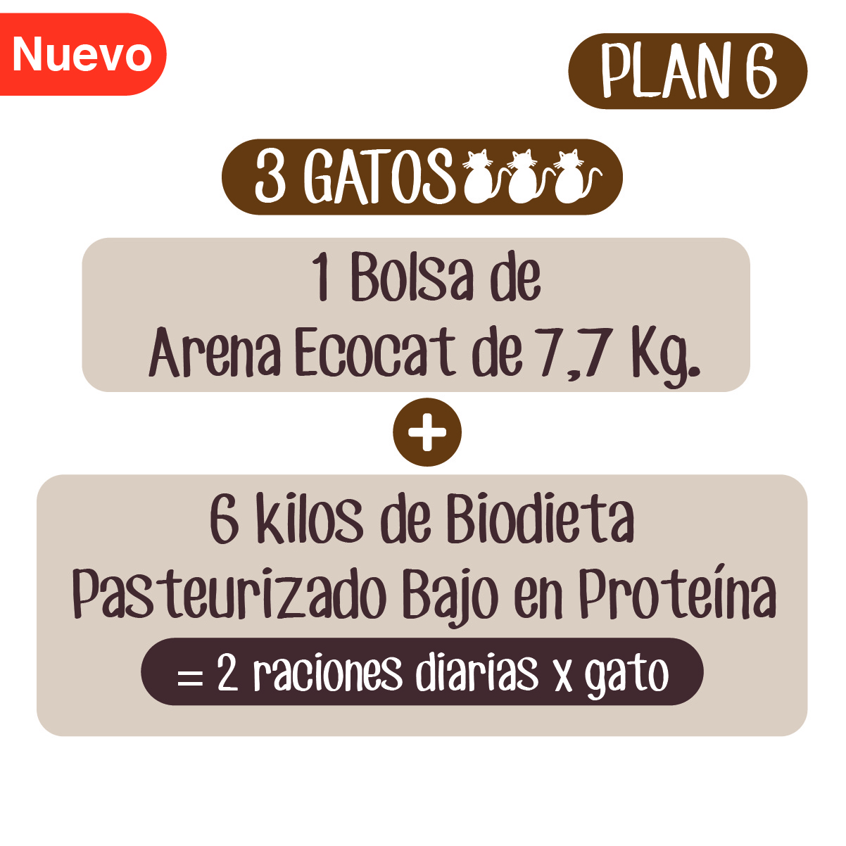 Plan Cuidado Renal 6: Arena Ecocat 7,7 Kg.+ 6 Biodieta pasteurizado bajo en proteína 1000 g. aprox.