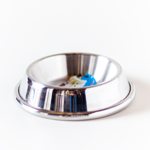 Plato de metal con base antideslizante.