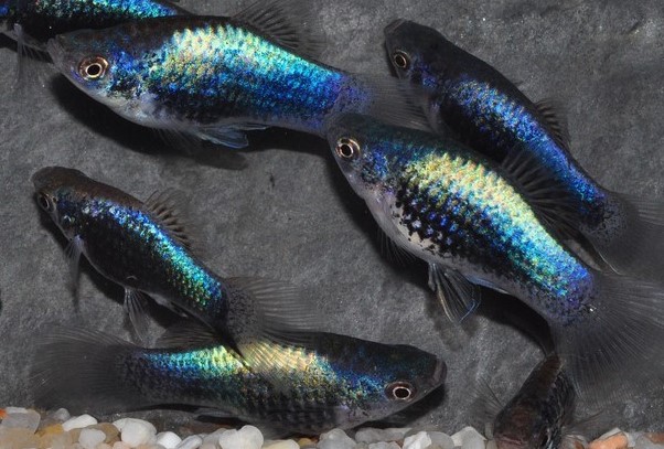 PLATY AZULADO Y CON MANCHA ALRGADA MAS OSCURA A LO LARGO DEL CUERPO.