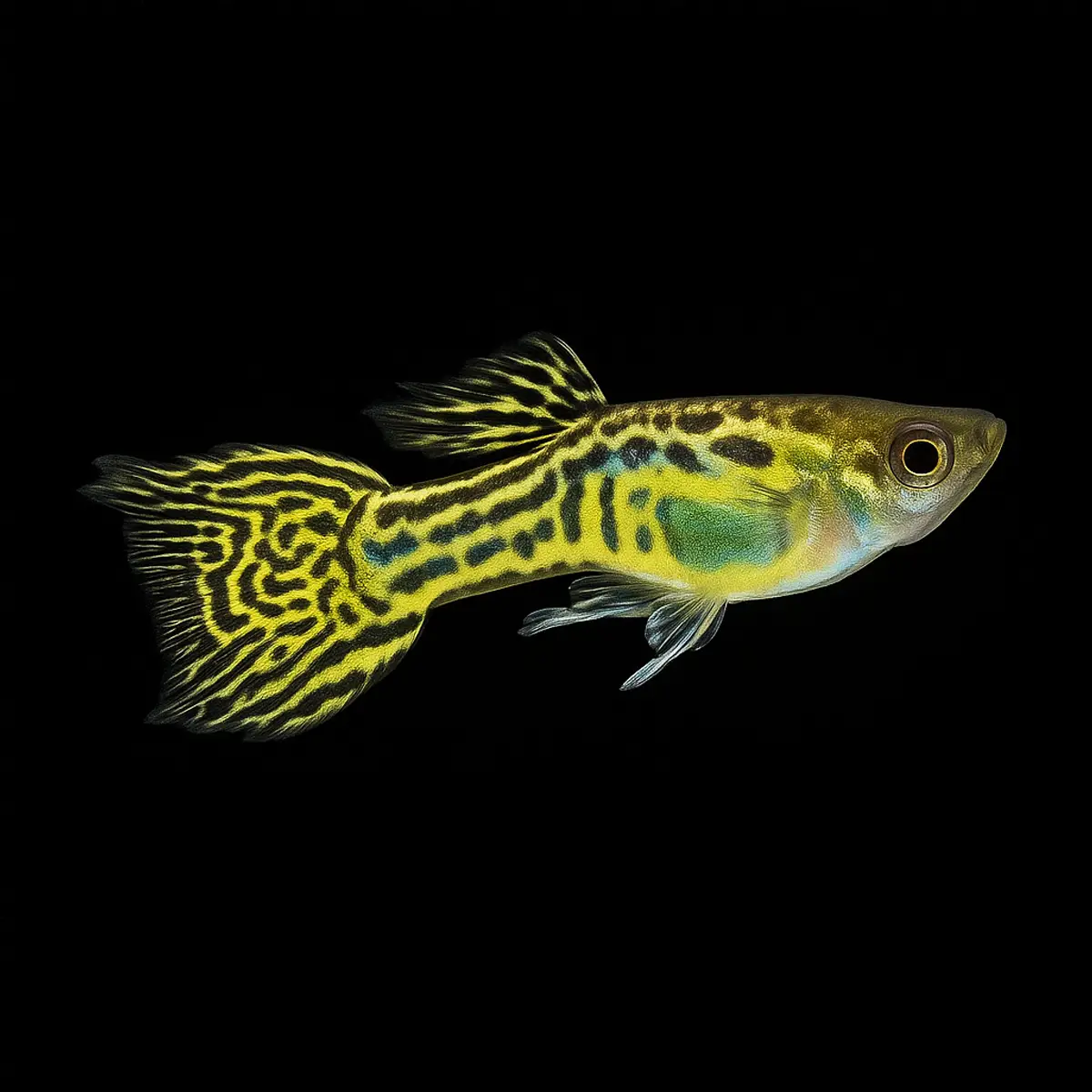 El Poecilia Endleri “Piel de Serpiente” es un pez pequeño y colorido, conocido por su asombroso patrón de manchas y líneas que recuerdan a la piel de una serpiente.