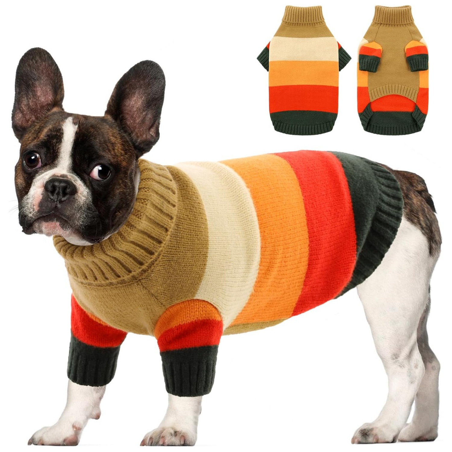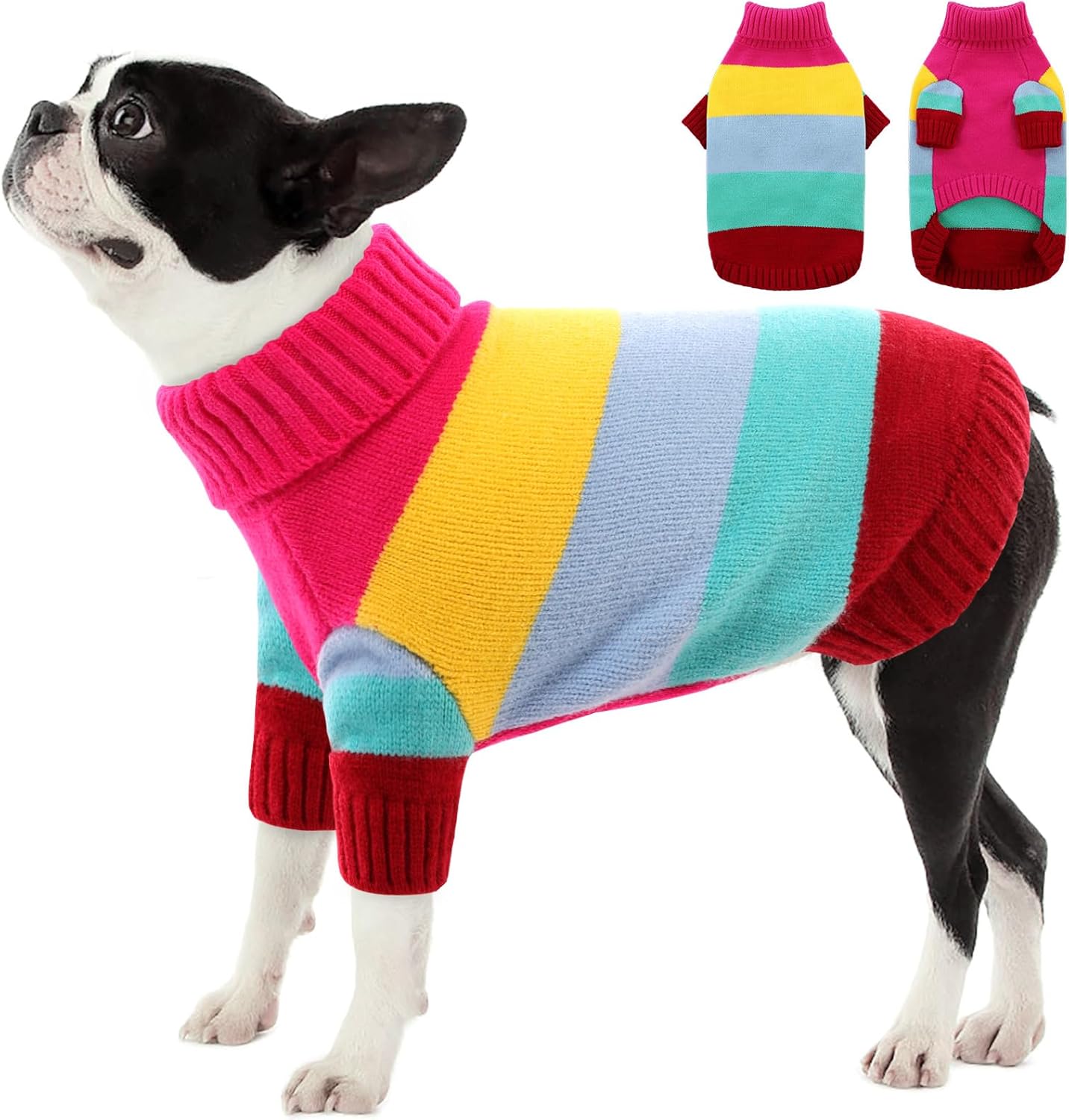 Elegante diseño de choque de color: el diseño de choque de color multicolor en la parte posterior del suéter para perro añade un toque de moda al armario del perro. El diseño colorido también es un elemento llamativo para el aspecto general de tu perro