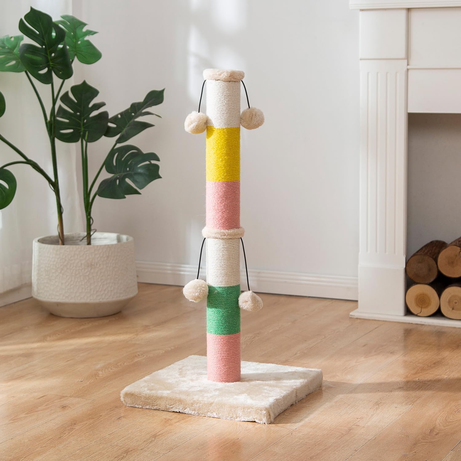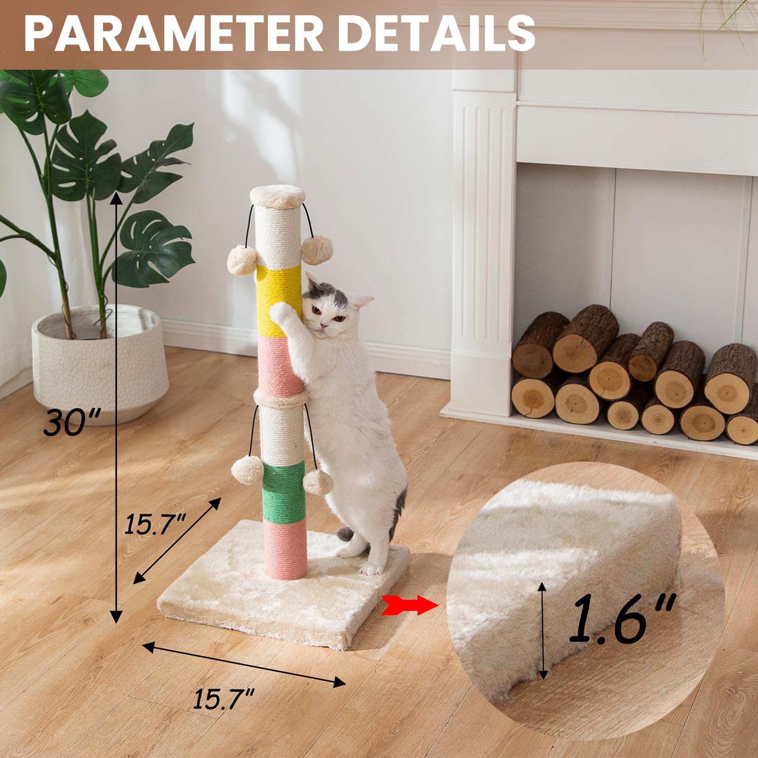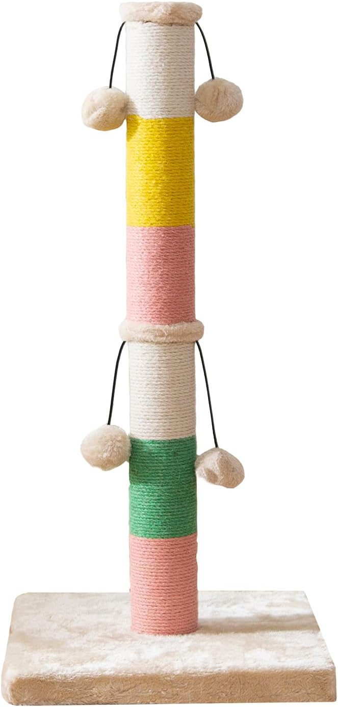 Poste elástico completo estándar: 30 pulgadas/30.3 in de altura, adecuado para gatos de todos los tamaños, desde gatitos hasta gatos adultos, excluyendo razas grandes. A diferencia de otros productos de boutique, nuestros productos son más vibrantes, al igual que los gatos son siempre el miembro más enérgico de nuestra familia, colocar este colorido pilar en nuestro hogar hará que nuestra sala de estar y hogar sean más vibrantes
