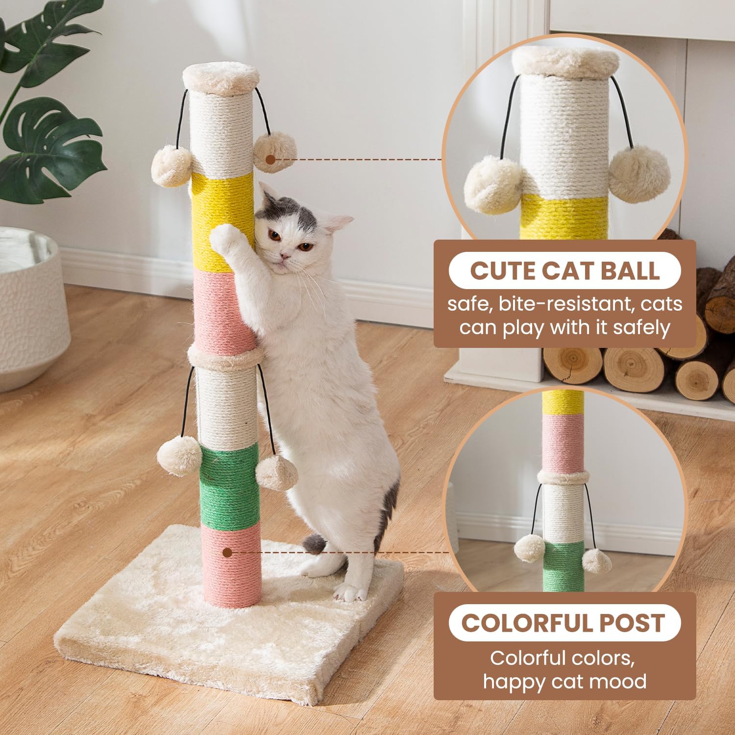 Hecho divertido: la bola de felpa añade encanto adicional para los gatos, manteniéndolos entretenidos y permitiendo un estiramiento completo, por lo que es ideal para afilar garras, especialmente para gatos más grandes.