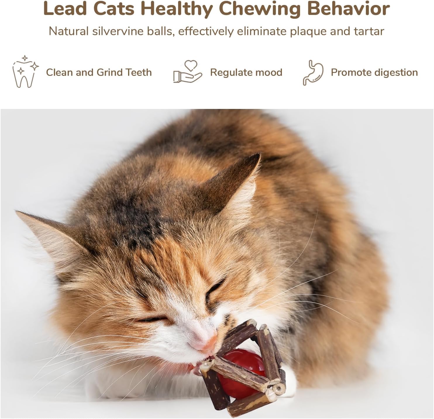 Bola de campana Silvervine: juguete de vid plateada desmontable, diseño duradero y bonito, puede limpiar los dientes de gato mientras mastica, relaja el estado de ánimo y mejora el apetito.