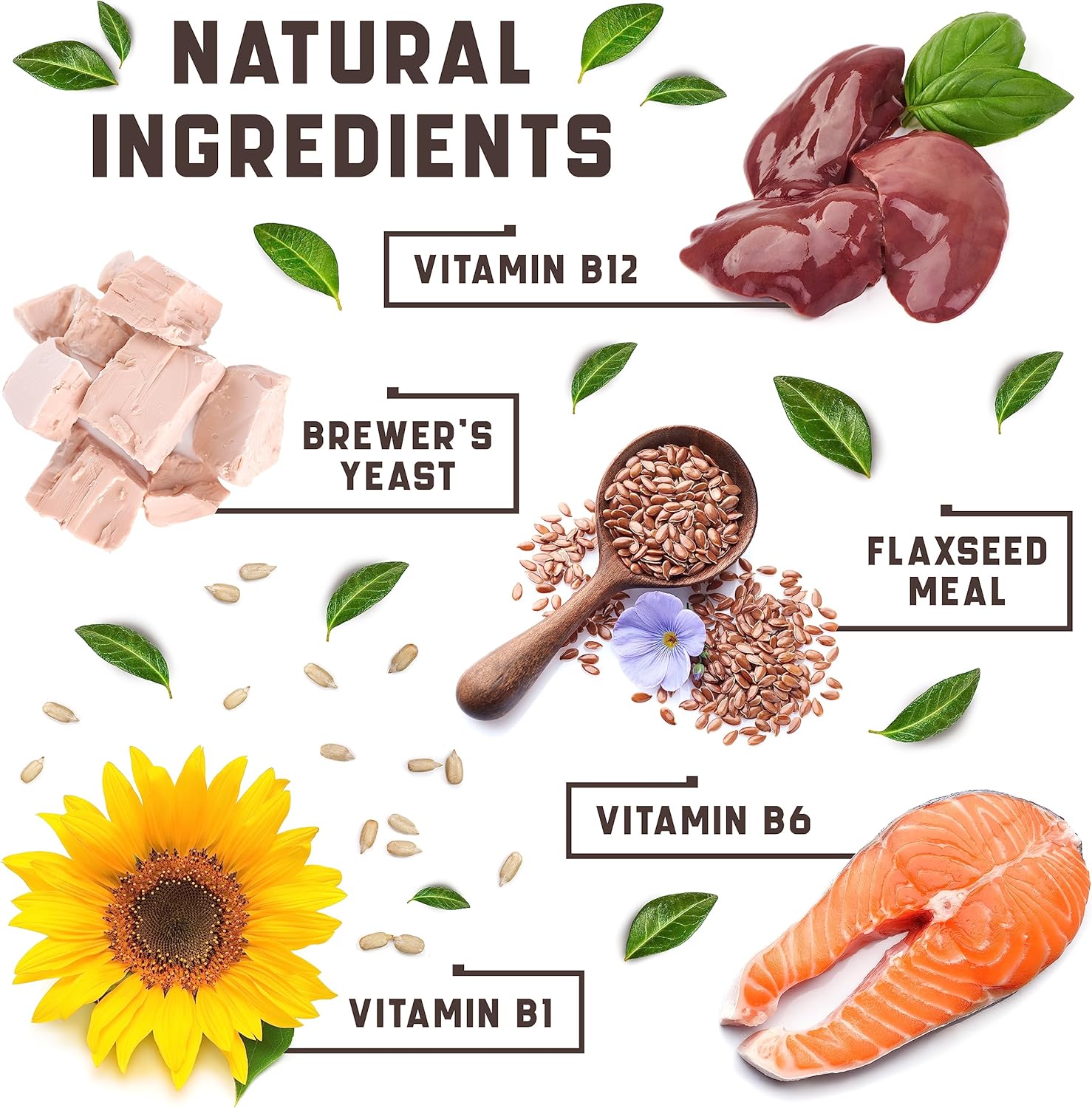 Mezcla potente: pulgas naturales y garrapatas para perros se mejoran con vitamina B1, B6 y B12. Esta poderosa fórmula no solo ayuda con las pulgas y las garrapatas del perro, sino que también apoya el sistema inmunológico y el pelaje saludable de tu mascota.