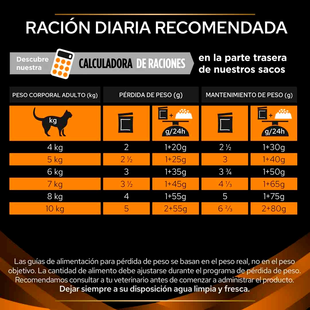 - Asegura el cumplimiento óptimo: la ración se calcula a partir del peso real del gato, no de su peso “ideal”