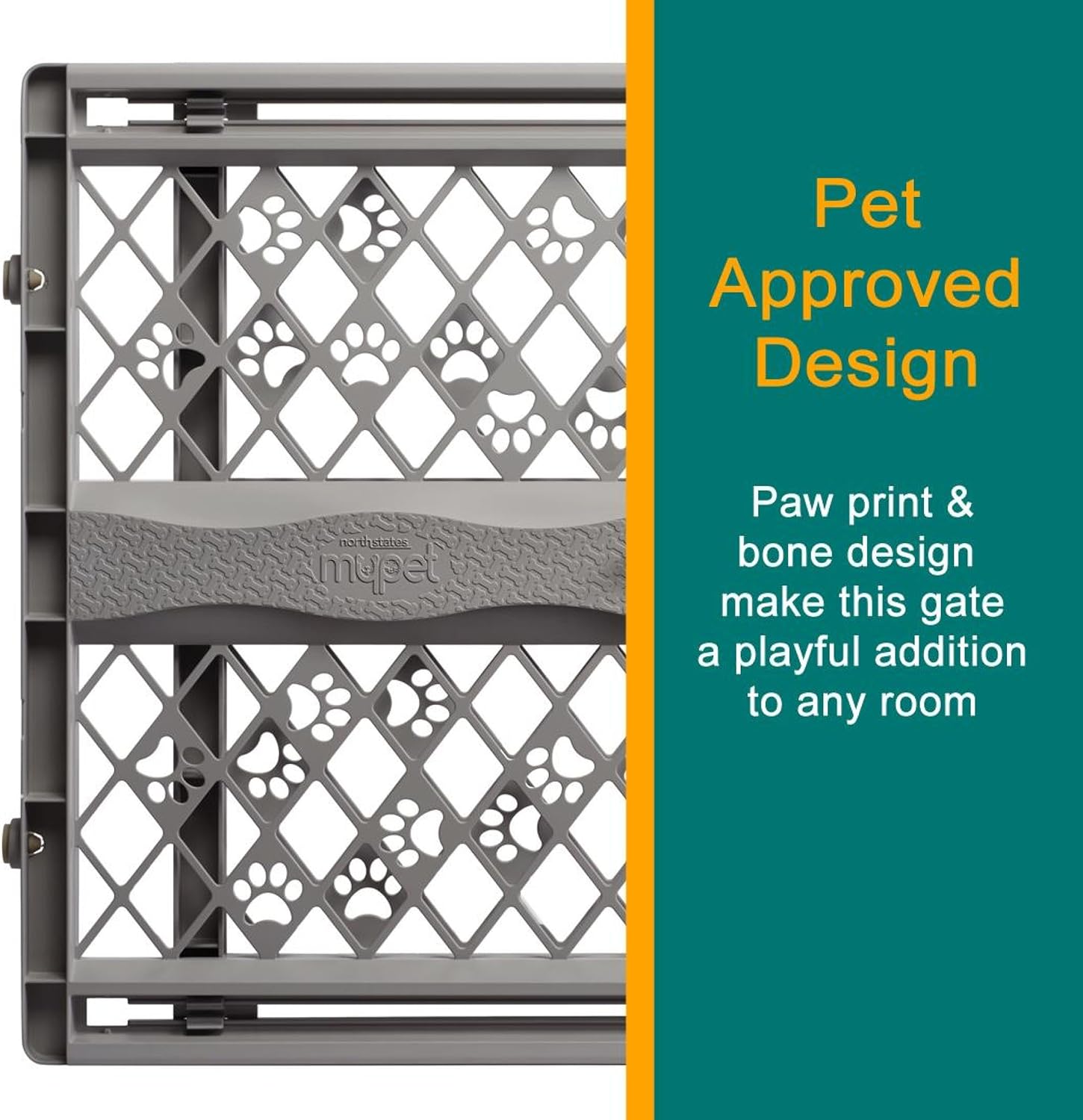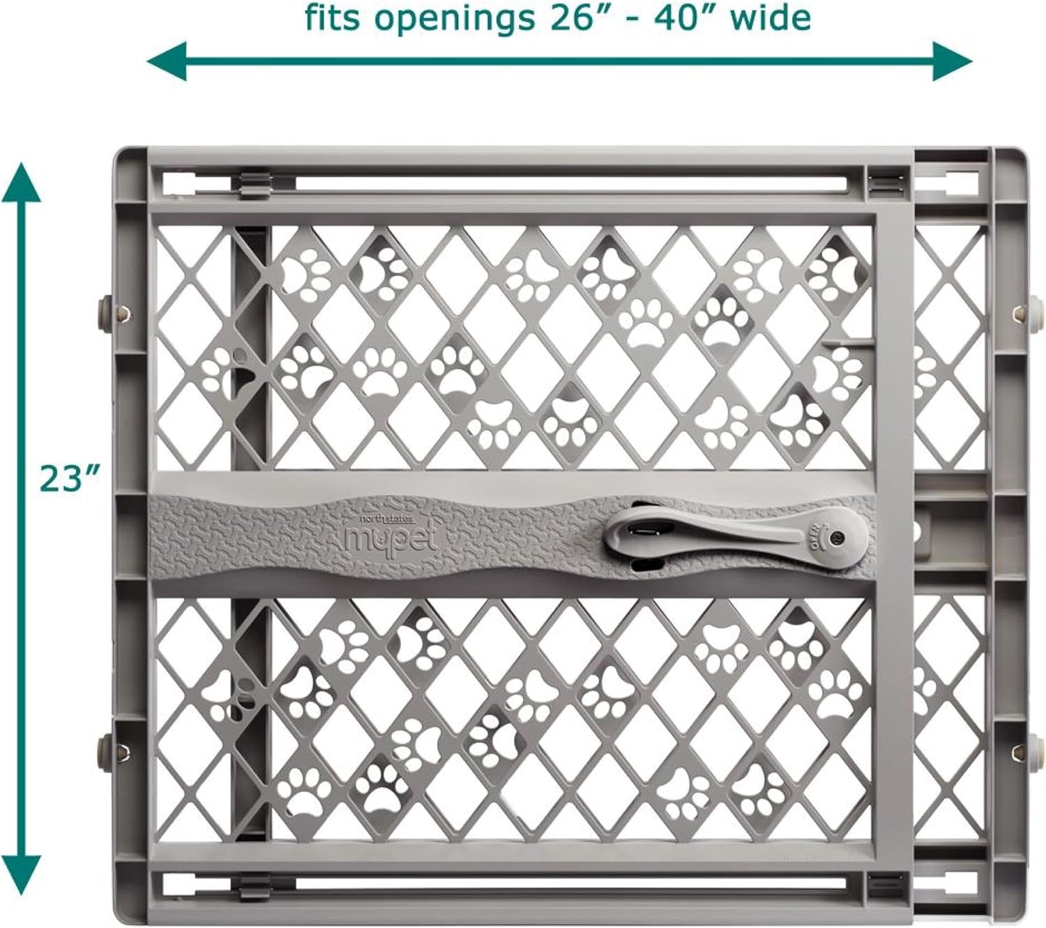 Seguridad sin preocupaciones: nuestra puerta expandible para perros es ideal para puertas y bloquear otros espacios interiores para mantener a tu mascota segura. Esta puerta duradera para cachorros está hecha de plástico gris fuerte y atractivo con adorables detalles de huellas de patas.