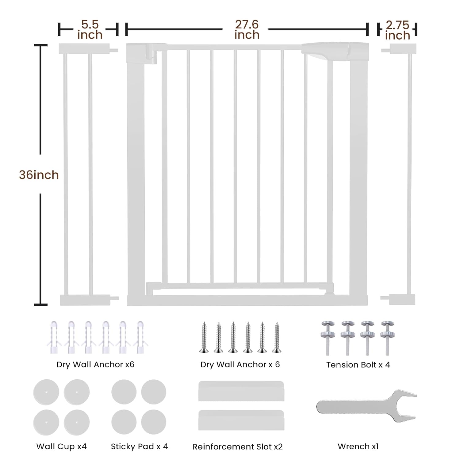 Extra alto: la puerta para perros mide 36 pulgadas de alto, más alta que la puerta normal de 28 pulgadas, para evitar que su mascota salte o su bebé se trepe, y se adapta a aberturas de 29,6 “a 40,5”.