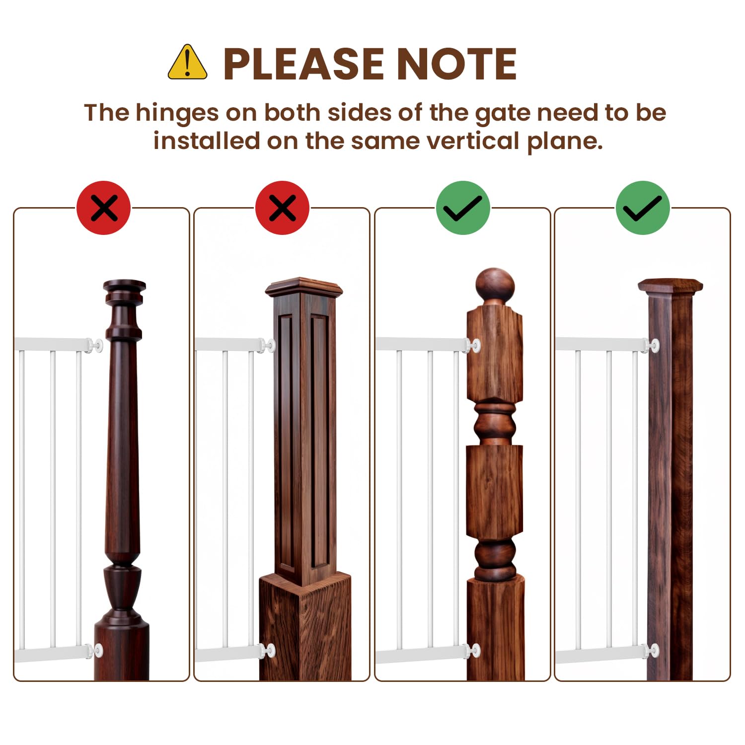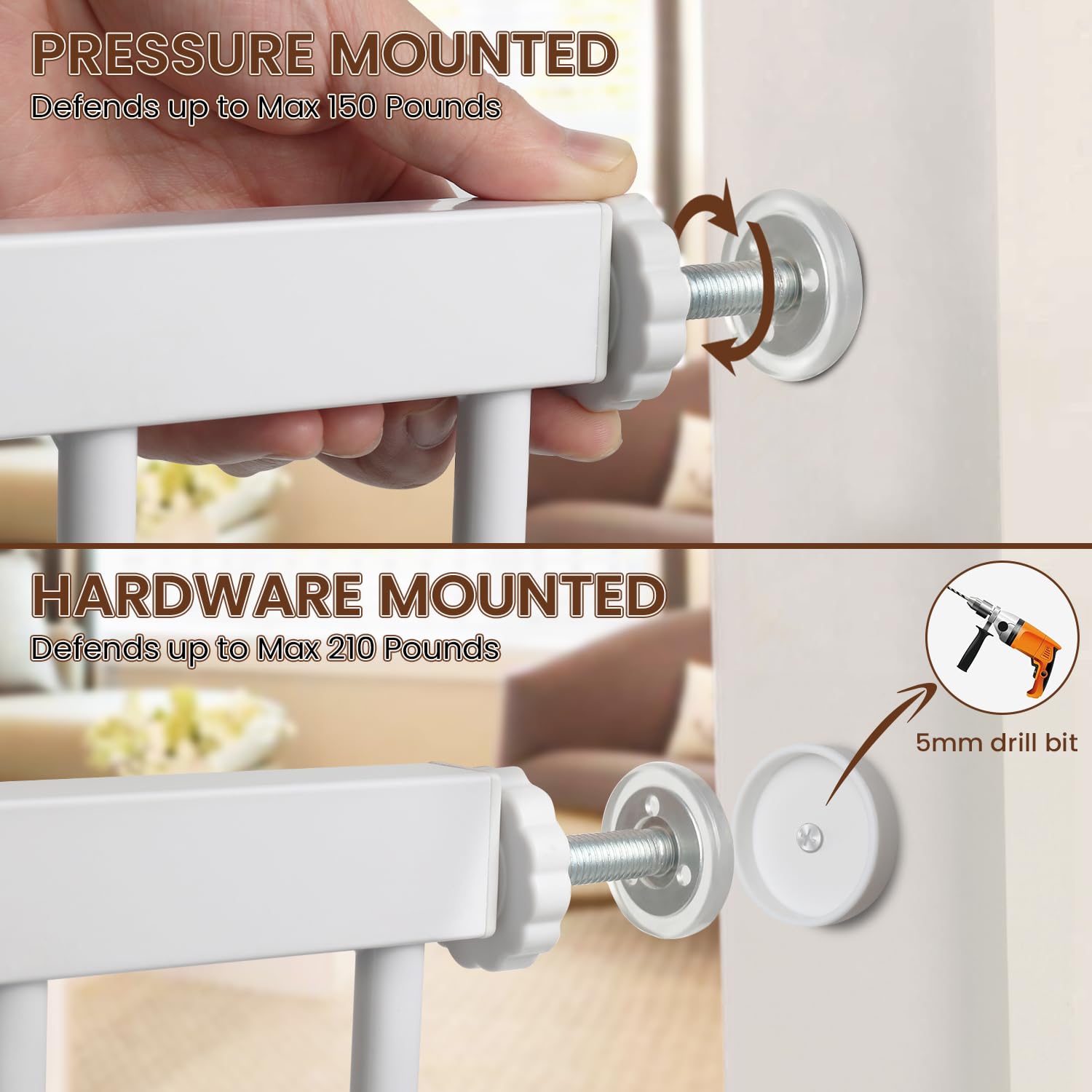 Montaje de hardware: también puede atornillarlo a la pared, para hacer que la puerta alta para perros sea más resistente, mientras que su perro o bebé no pueden empujarla hacia abajo, por lo que esta puerta se puede usar en la parte superior o inferior de las escaleras.