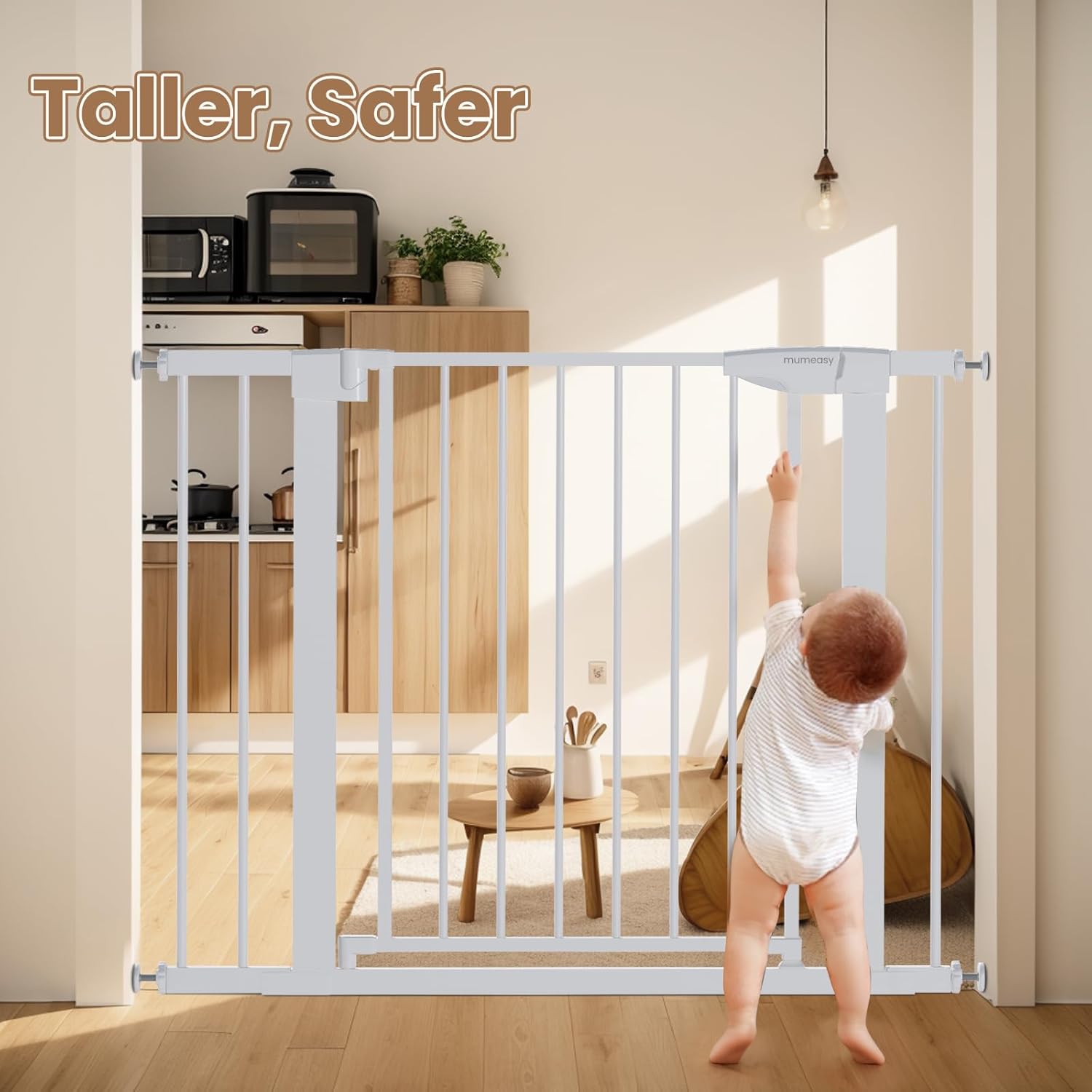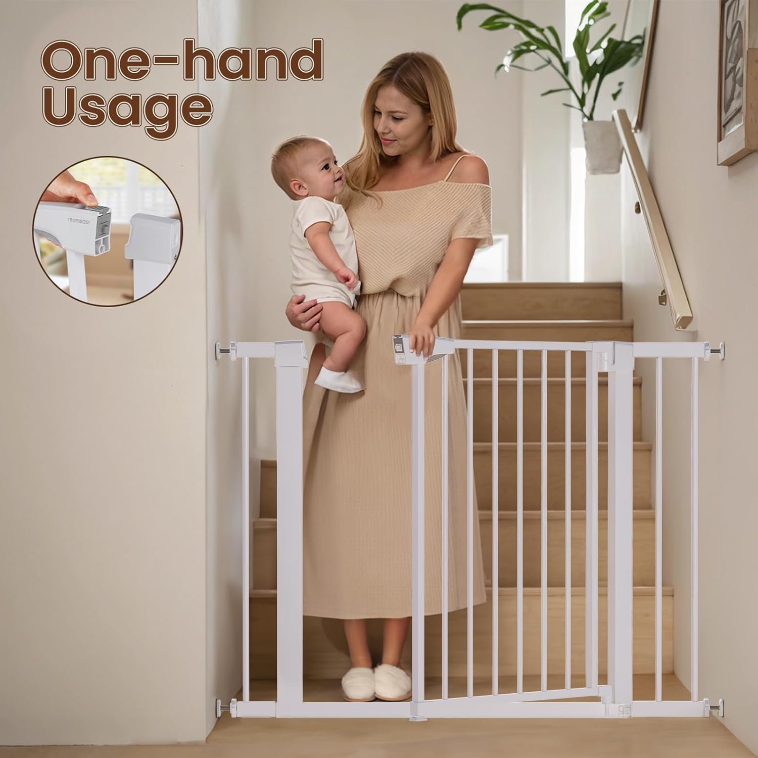 Bloqueo de seguridad doble: la puerta alta para bebés tiene un bloqueo de manija de dos acciones, así que no se preocupe, su perro inteligente o su bebé inteligente lo liberarán.
