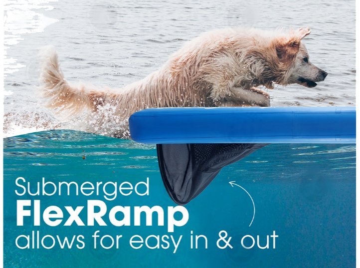- Su mascota saldrá del agua fácilmente con este producto que permite escalar usando la rampa. Este artículo utiliza tuberías flexibles para mantener la rampa abierta y sumergida. La rampa está construida con malla duradera de PVC resistente a roturas.
