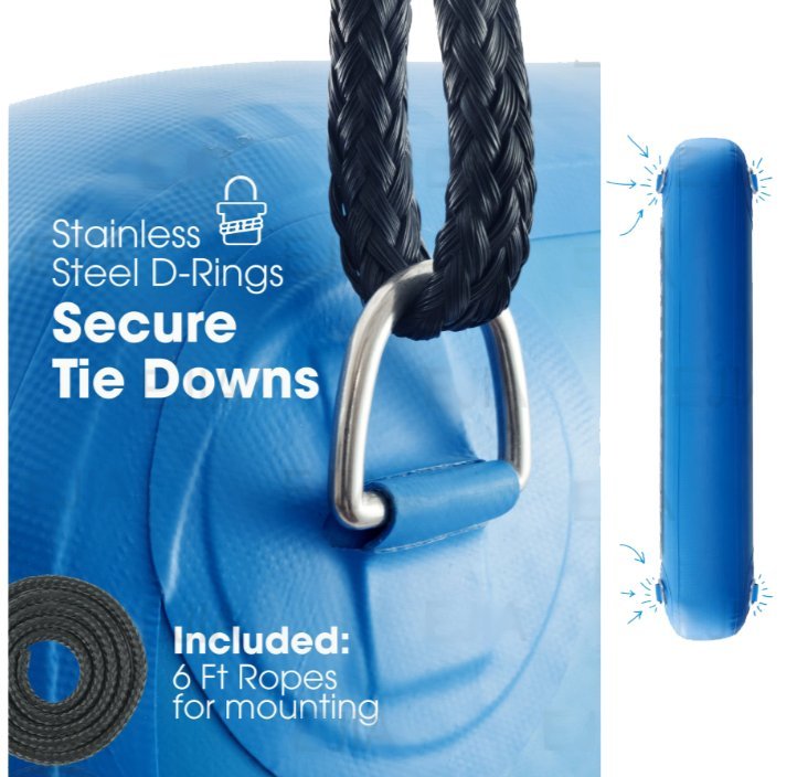 - Con 2 argollas de acero inoxidable para amarrar fácilmente la plataforma a cualquier superficie.
