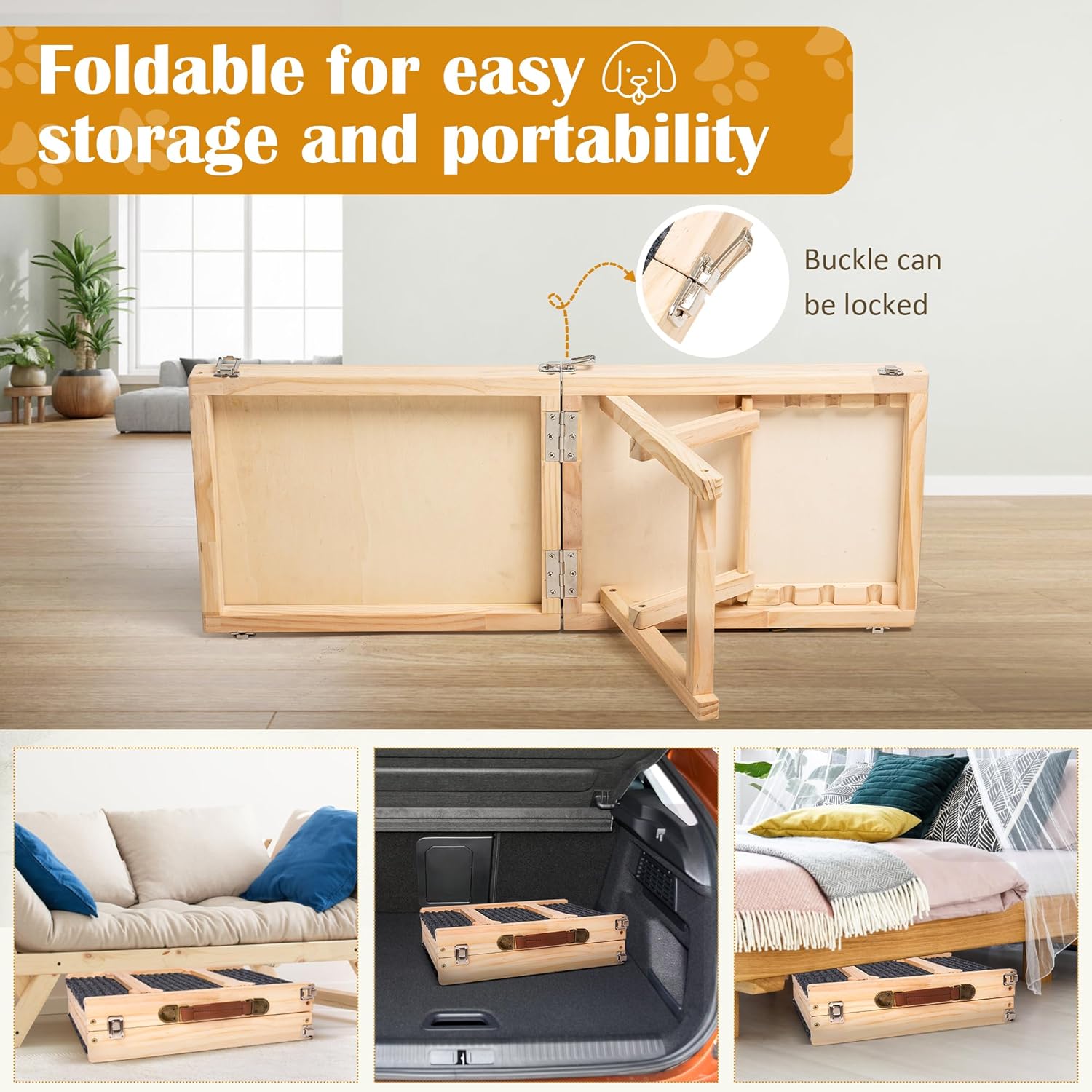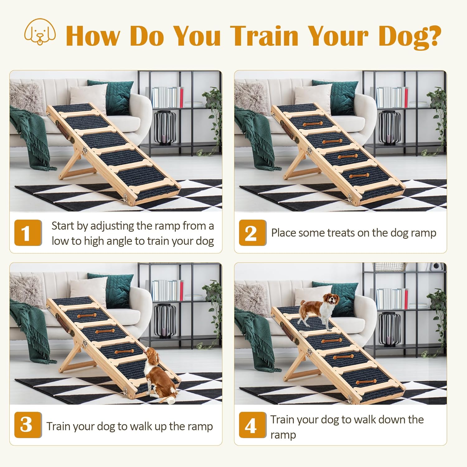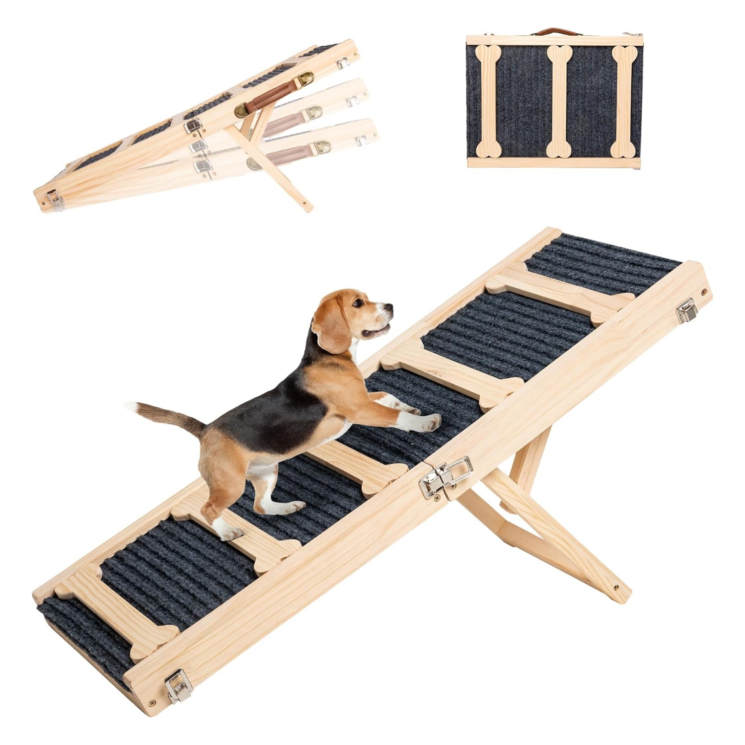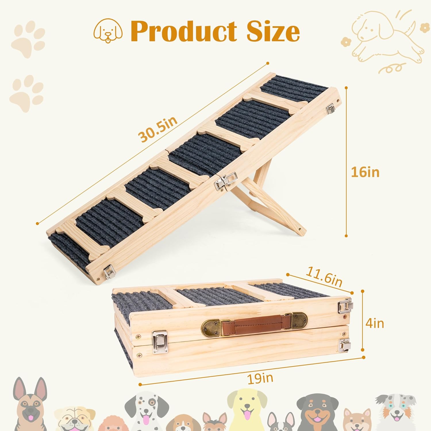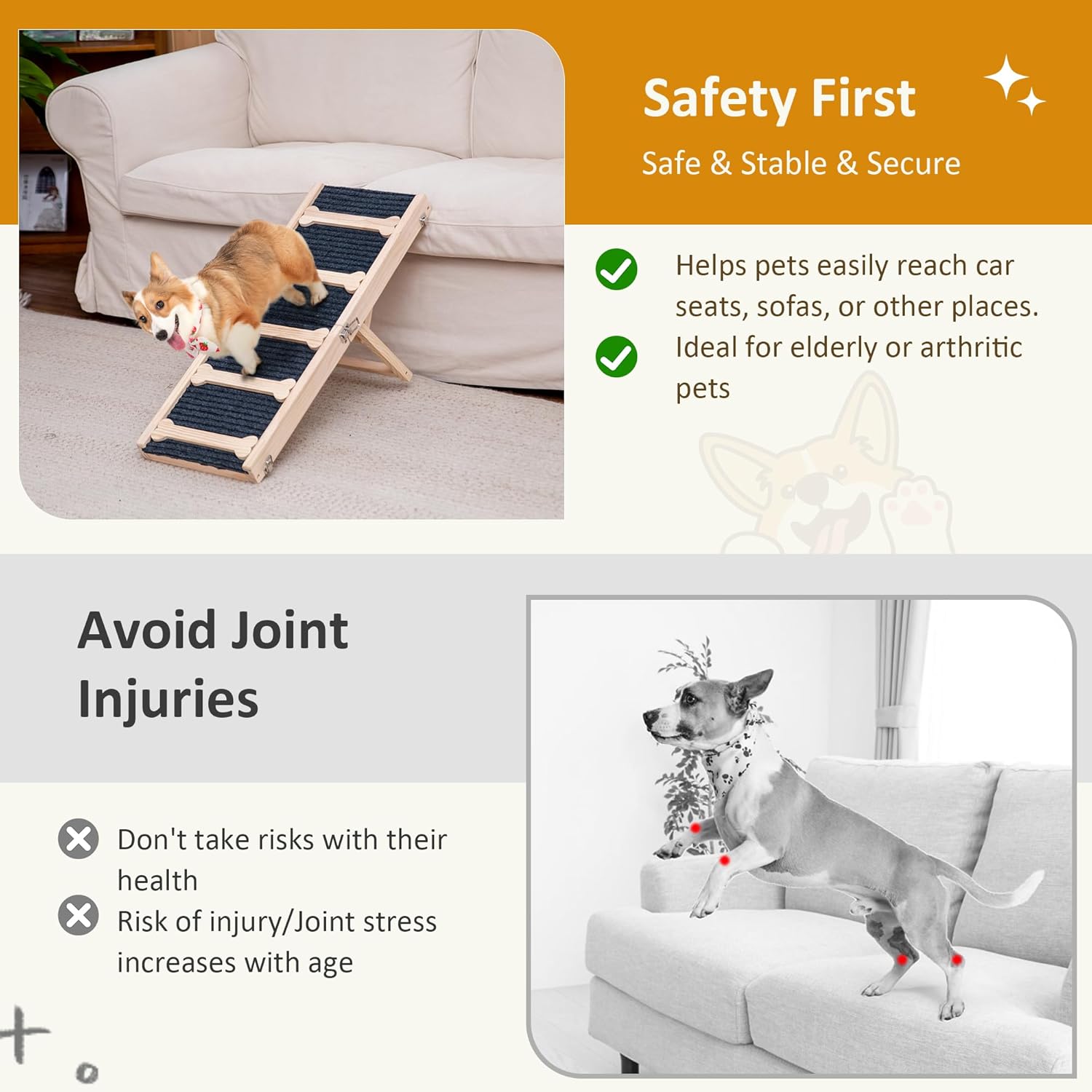 Robusto y seguro: nuestra rampa para mascotas para perros pequeños está hecha de un gran material de madera con superficie antideslizante que es resistente y duradera, y no es fácil de romper o usar. Esta rampa para perros adopta un diseño triangular, que proporciona un apoyo resistente y mejora la estabilidad de la rampa