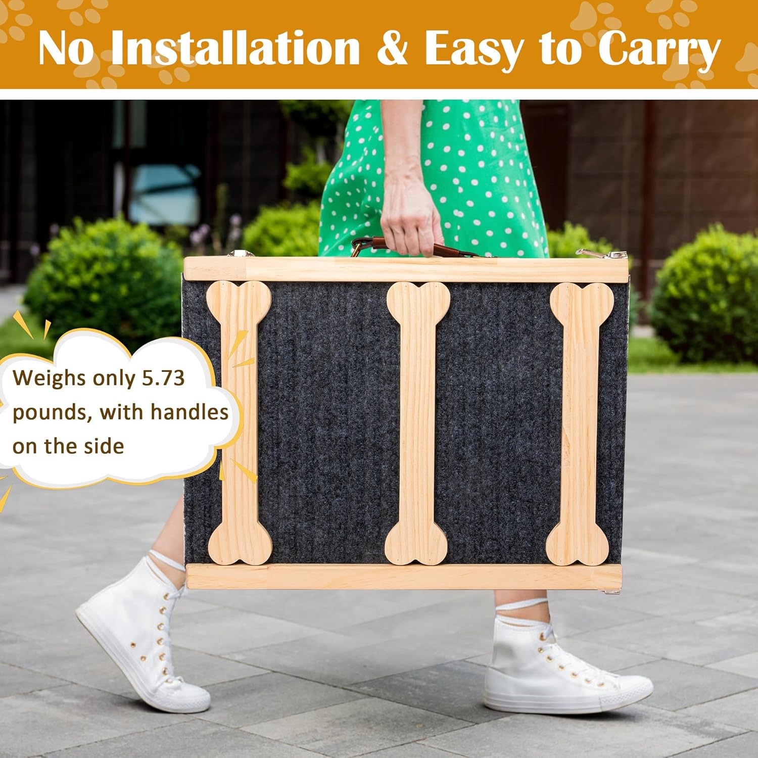 Diseño plegable y con mango: nuestra rampa plegable para mascotas no requiere montaje y se puede utilizar directamente al recibirlo, brindando más comodidad a los dueños de mascotas. Y la rampa para mascotas añade un asa en el lateral, es fácil de llevar, por lo que puedes llevarla fácilmente en interiores o exteriores