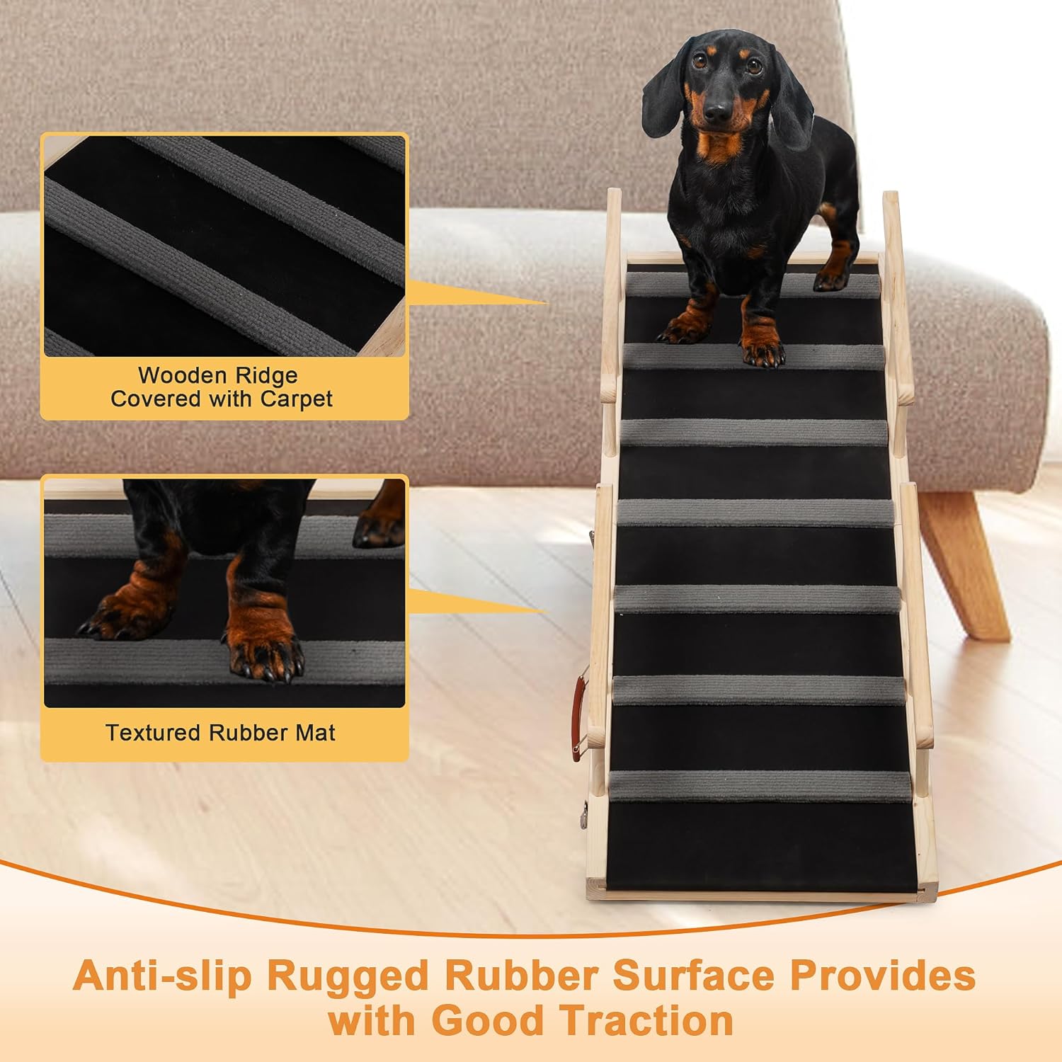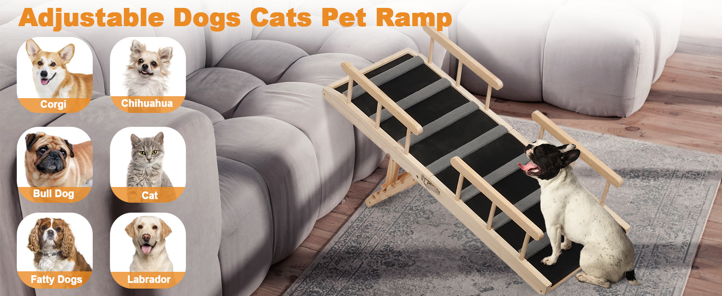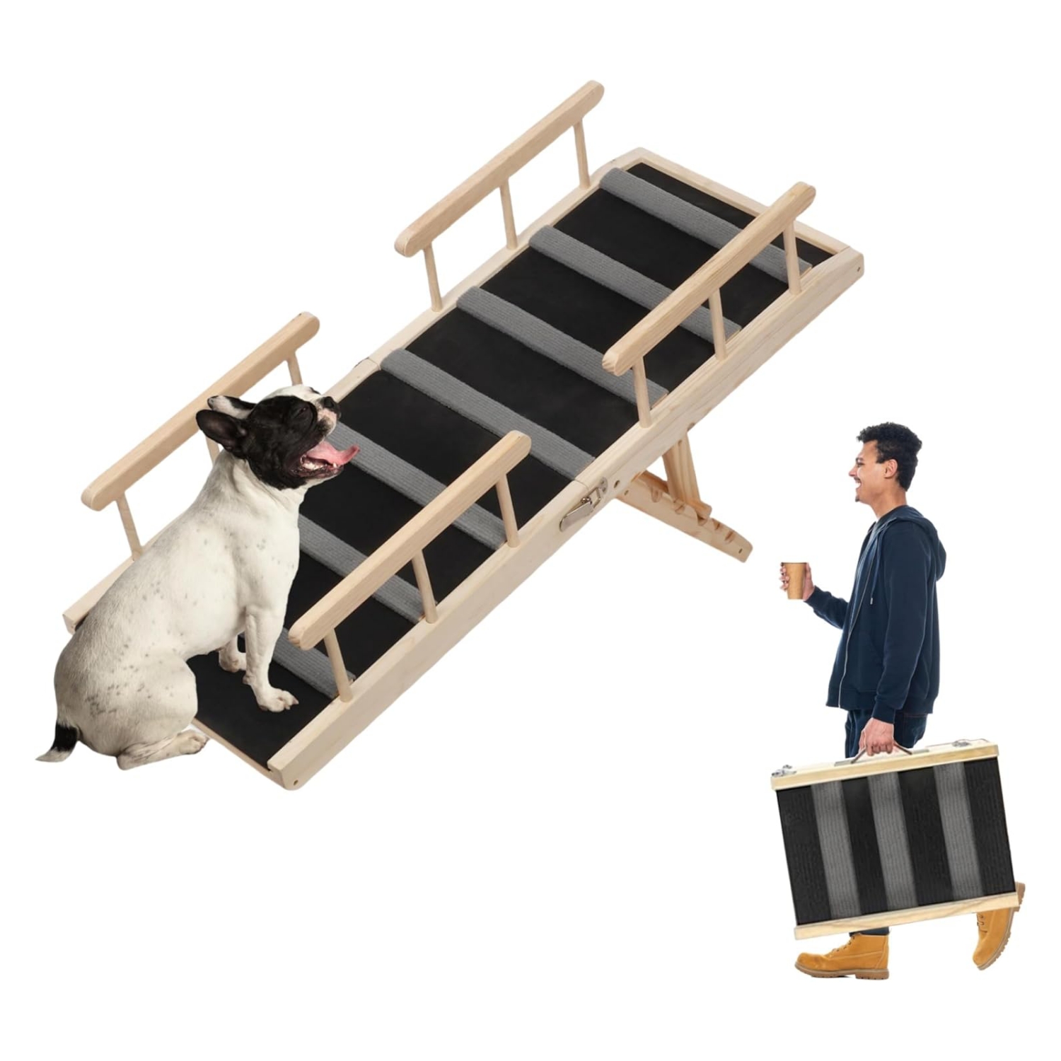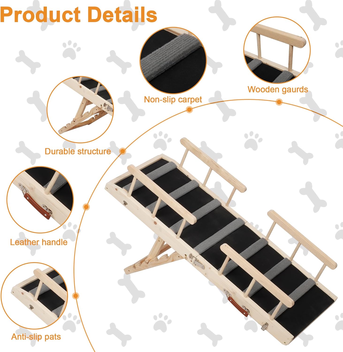 Robusto y seguro: nuestra rampa para mascotas para perros pequeños está hecha de un gran material de madera con superficie antideslizante que es resistente y duradera, y no es fácil de romper o usar. Esta rampa para perros adopta un diseño triangular, que proporciona un apoyo resistente y mejora la estabilidad de la rampa