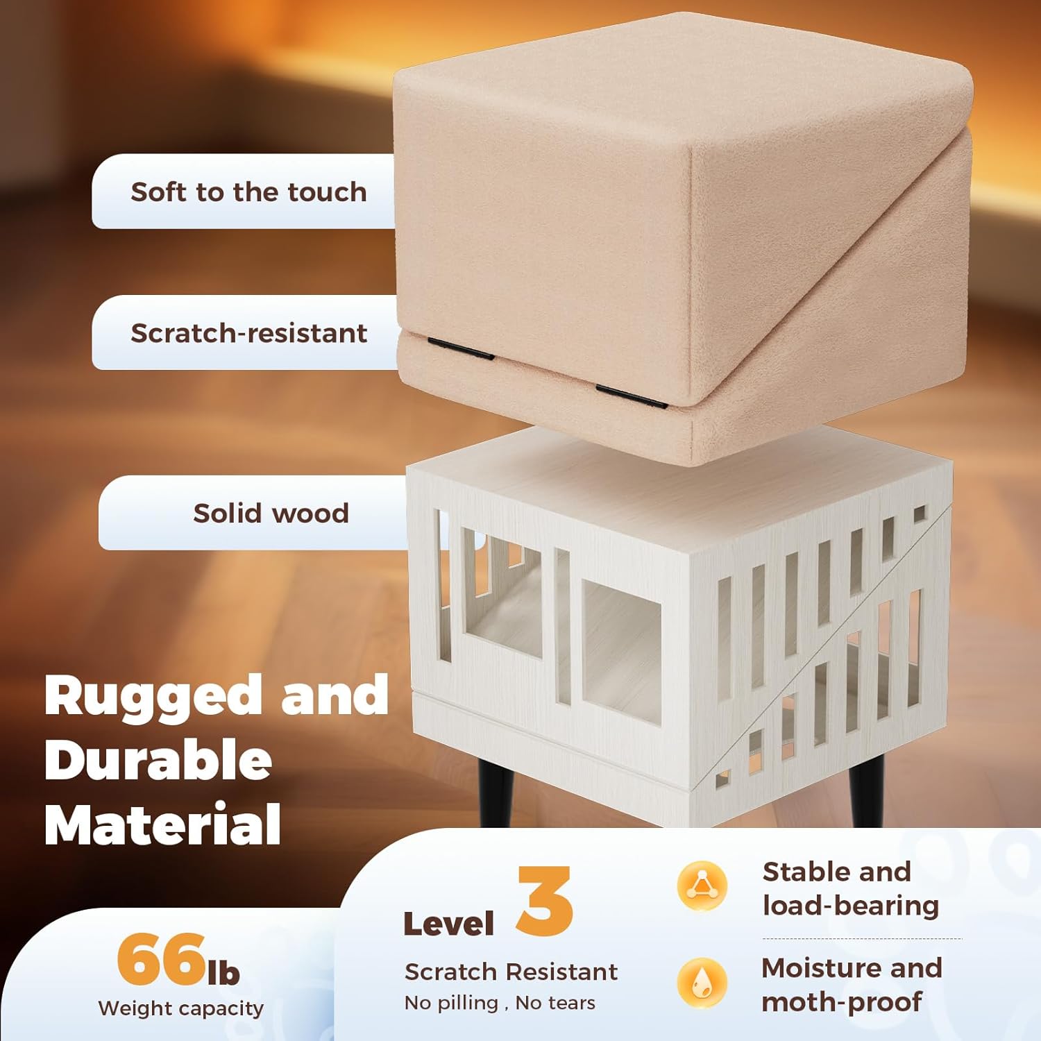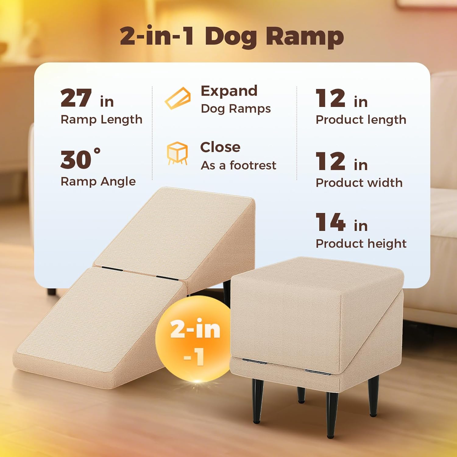 Diseño multifuncional dos en uno: estas rampas para perros pequeños son únicas. Cuando se despliega, es una rampa de 24 pulgadas de largo x 12 pulgadas de ancho x 14 pulgadas de alto para que los perros suban al sofá. Cuando está cerrado, se convierte en un práctico banco pequeño de 12 (L)*12 (W)*14 in (H). La rampa pequeña para perros para sofá no solo satisface las necesidades de los perros para subir y bajar fácilmente del sofá, sino que también se puede utilizar como un pequeño asiento doméstico diario. Es un artículo dos en uno, añadiendo comodidad y diversión a tu espacio doméstico.