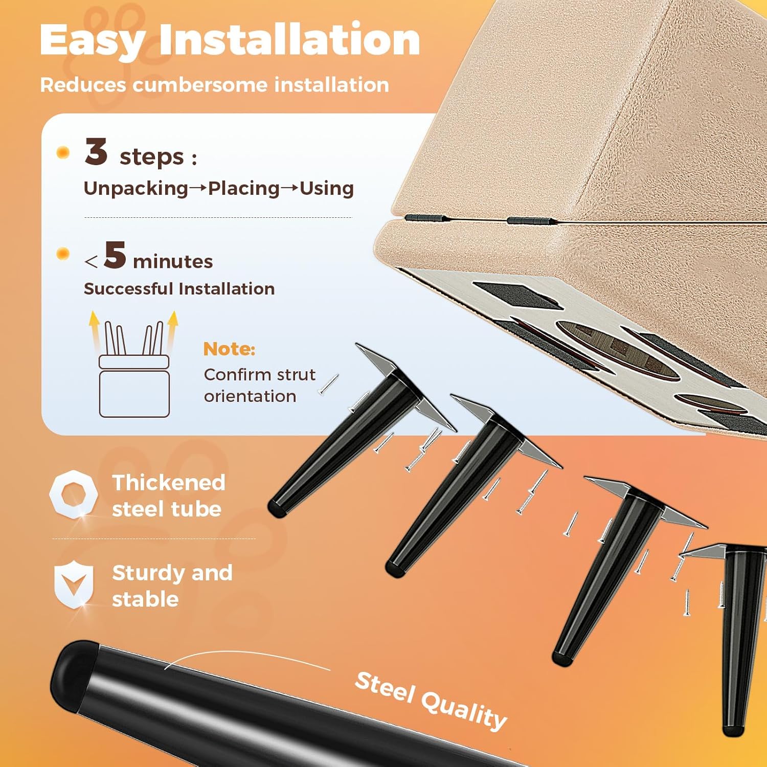 Método de instalación simple: la instalación de rampa para perros pequeños es extremadamente simple. Simplemente alinee las cuatro patas hacia afuera con los orificios de los tornillos y apriételas. Es fácil de usar, ahorrando tiempo y energía, y creando rápidamente un pasaje conveniente para tu mascota.