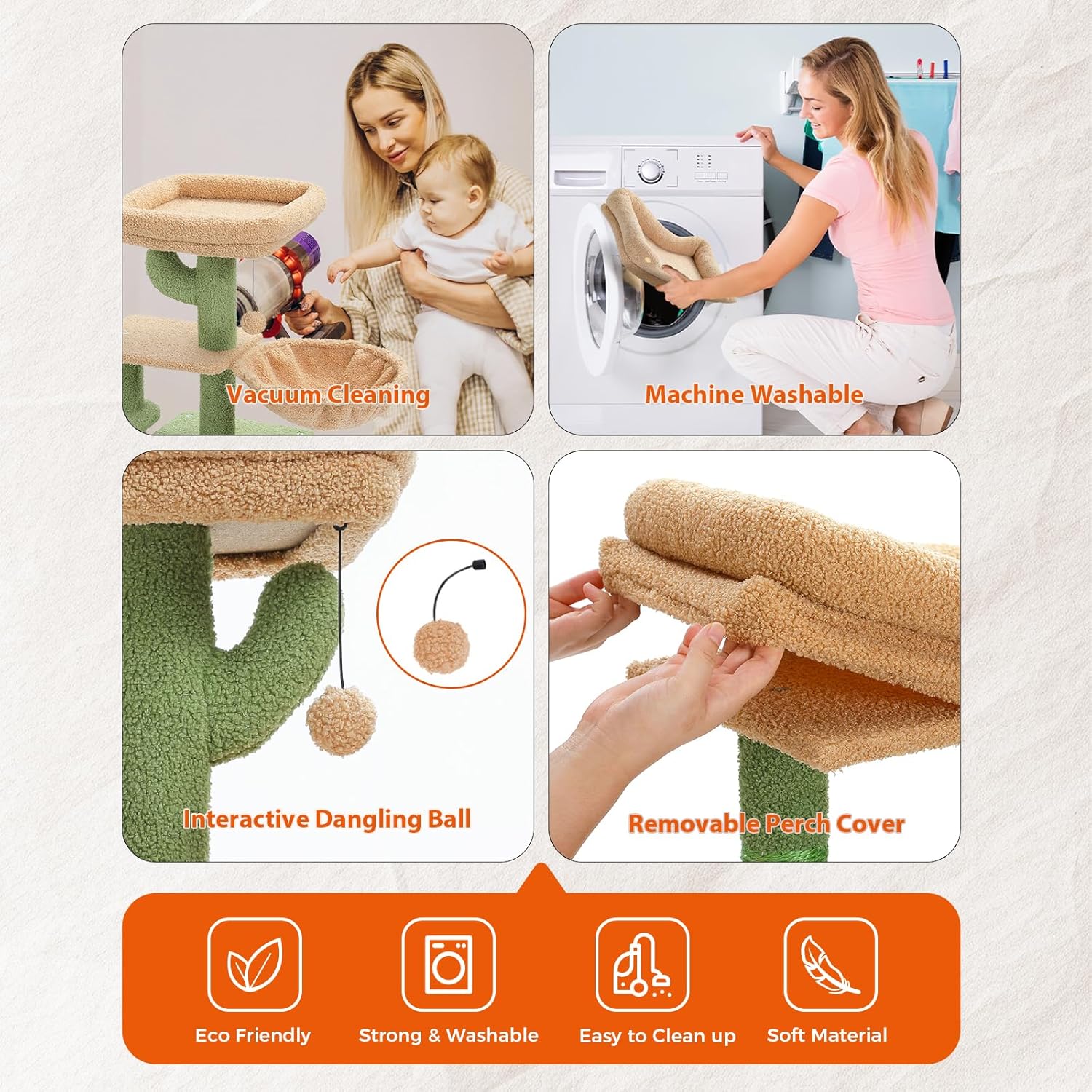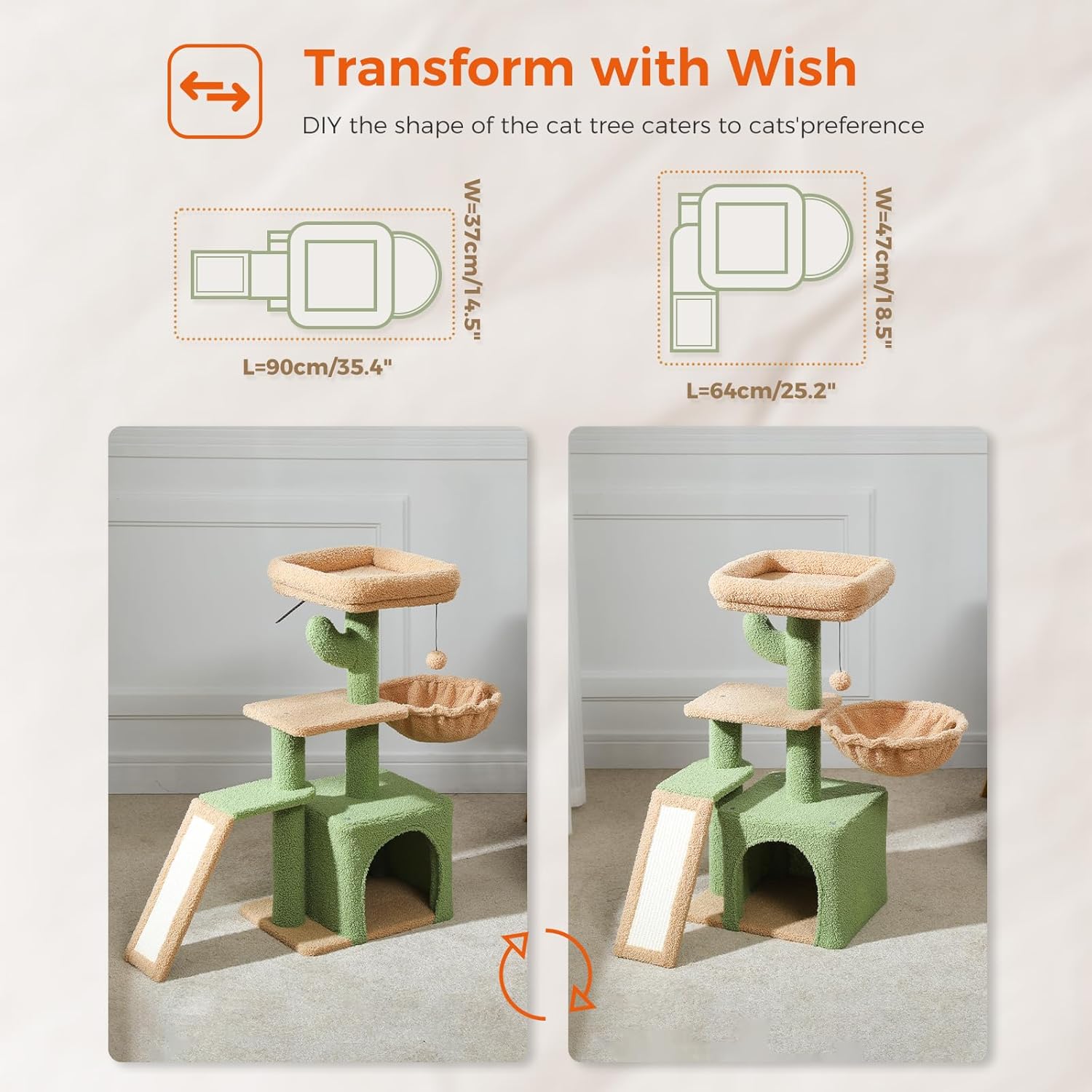 Compacto y elegante: este bonito árbol para gatos de interior está diseñado para caber en cualquier espacio sin comprometer la diversión y la funcionalidad. El elegante diseño de árbol de cactus para gatos añade un toque de fantasía a la decoración de tu hogar