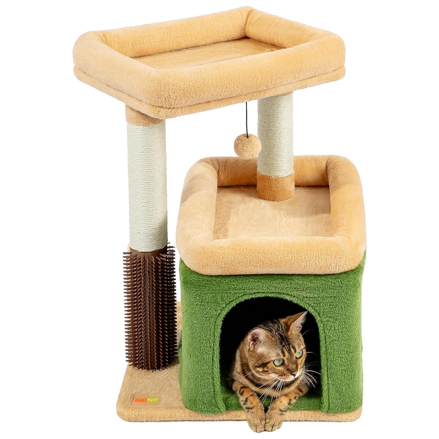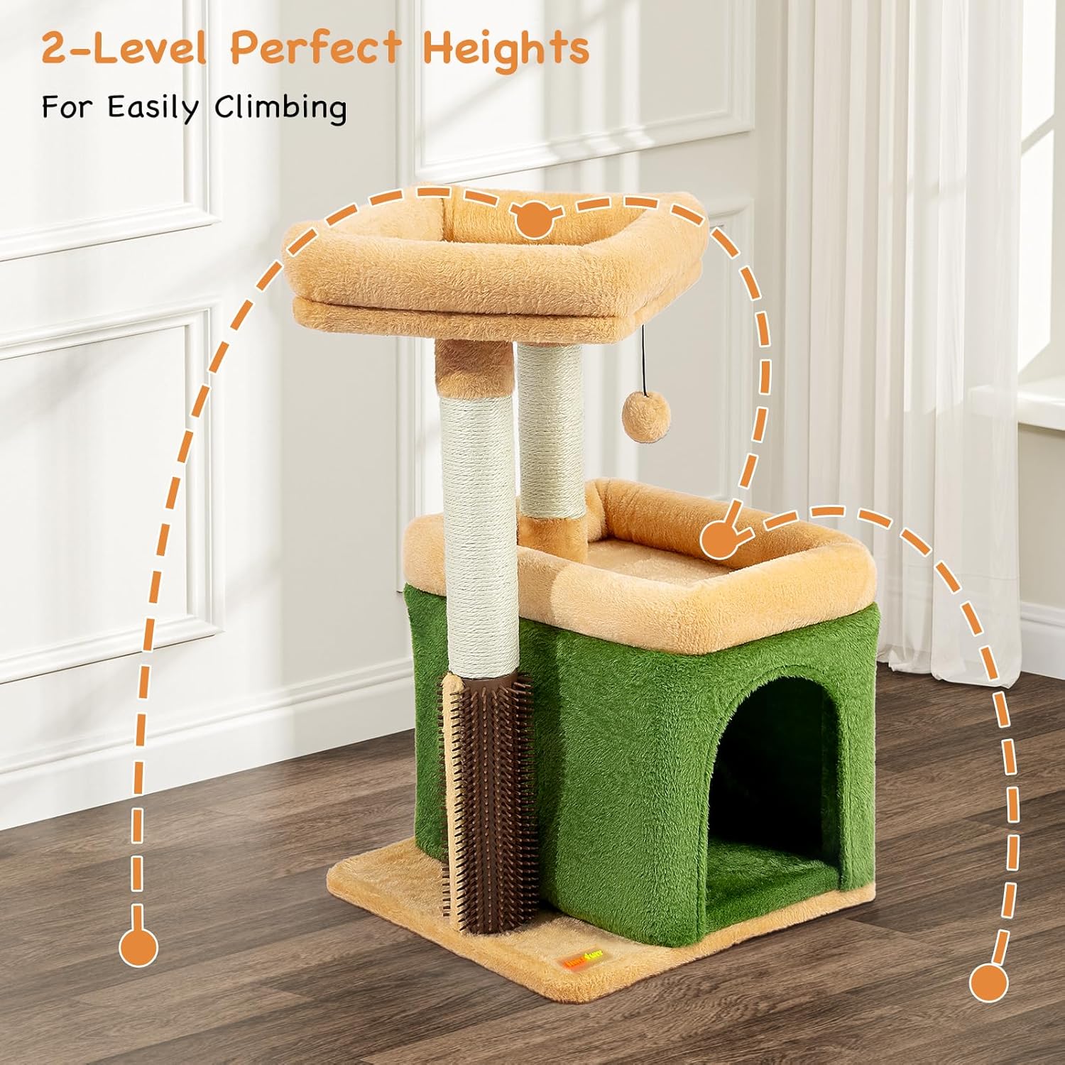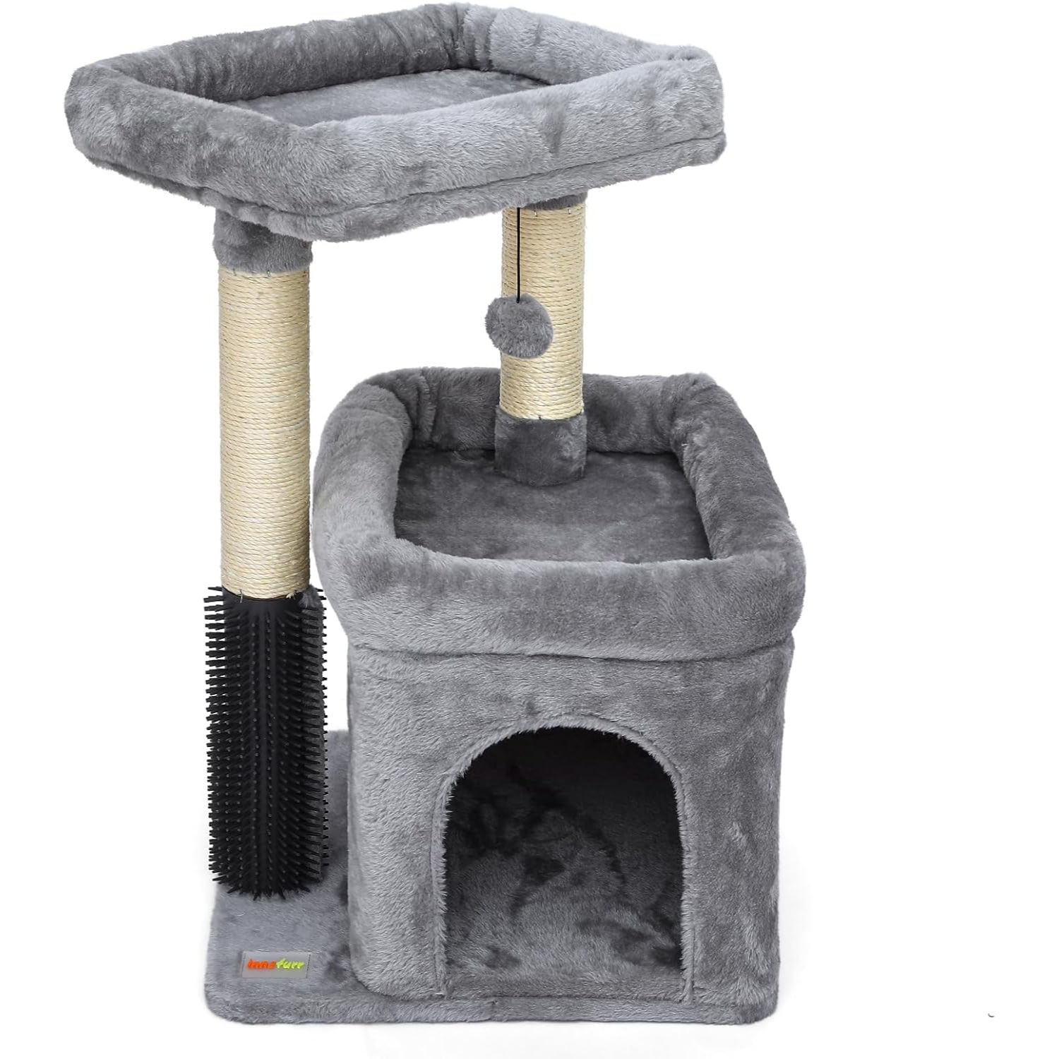Cepillo de masaje y postes de sisal: incluye un cepillo de masaje de 3.74 pulgadas de diámetro para aseo y circulación sanguínea, además de un robusto poste de sisal de 2.76 pulgadas de diámetro para apoyar el afilado de garras y proteger los muebles