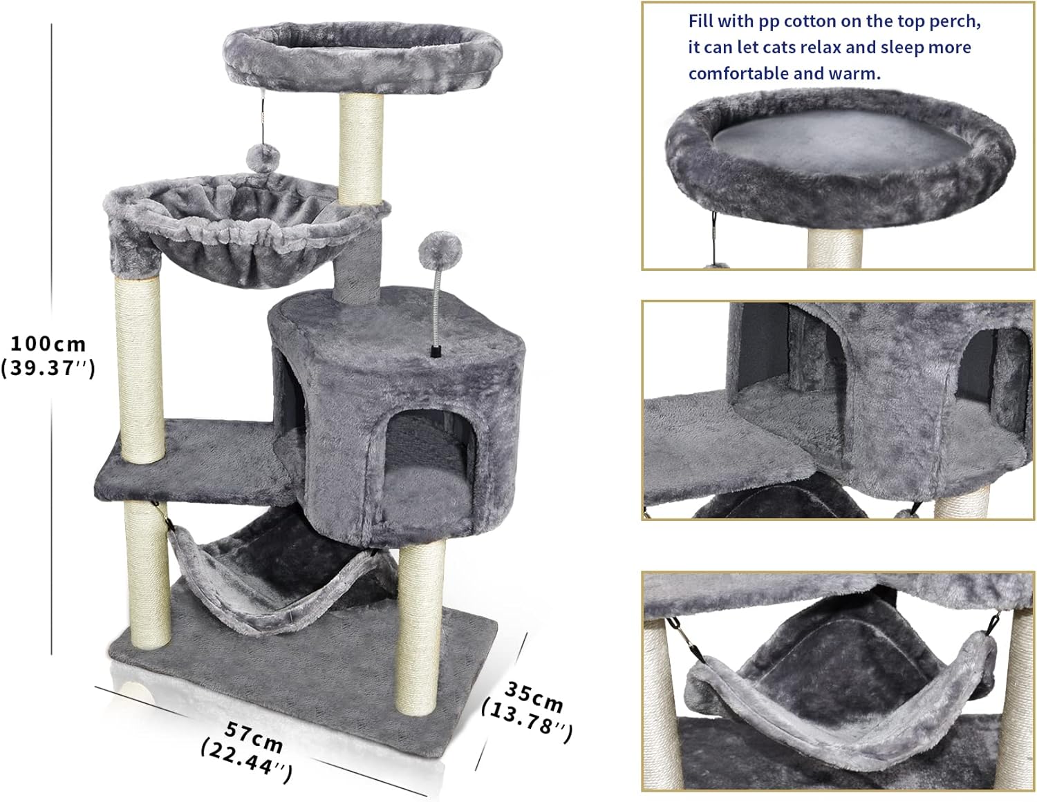 Tamaño total: 22.44 x 13.78 x 39.37 pulgadas de alto. La tabla base grande puede aumentar la estabilidad del árbol para gatos. Aviso: Intenta colocarlo contra la pared.