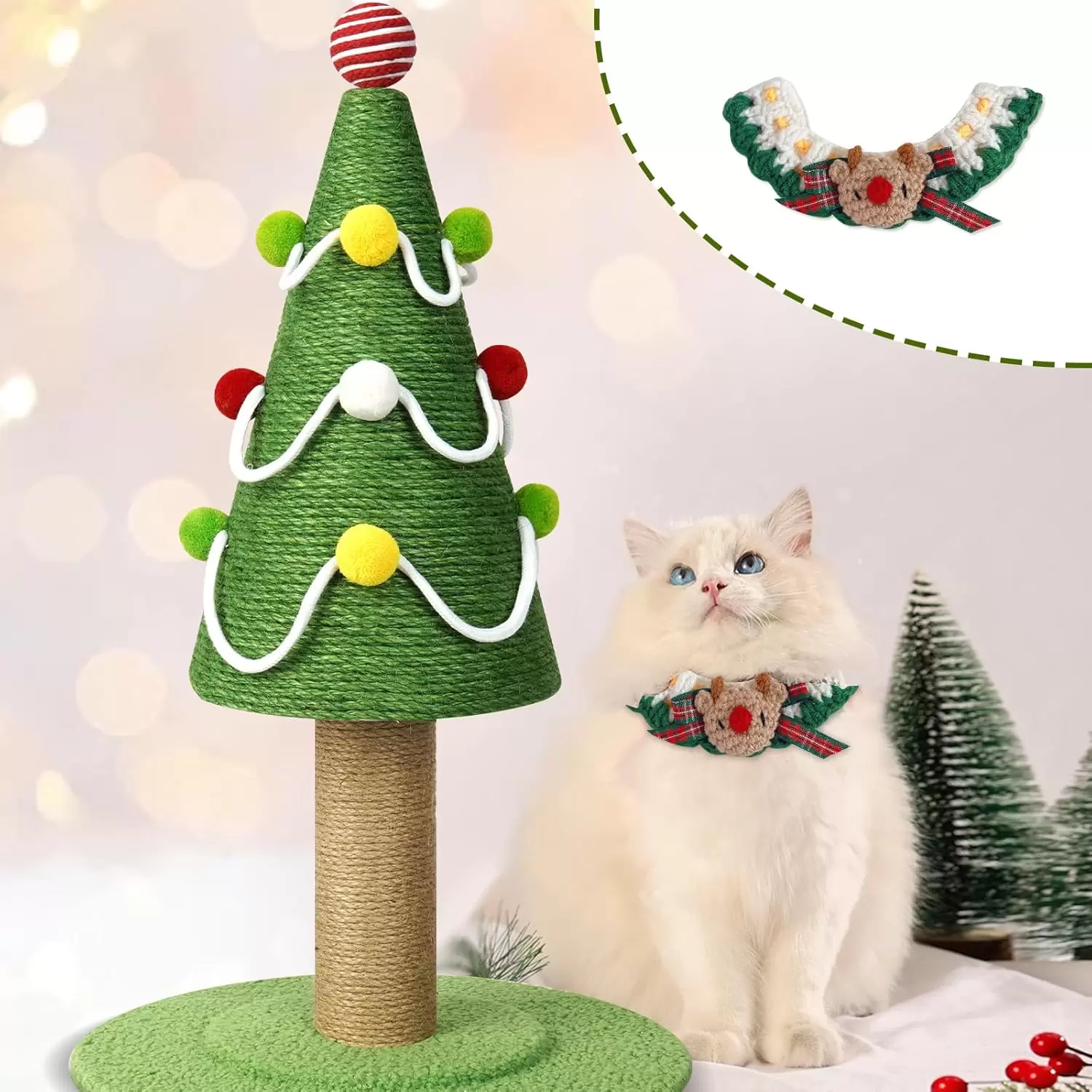 ¡Celebra las fiestas con este encantador Rascador de Sisal con forma de Árbol de Navidad! Su apariencia festiva atrae fácilmente la atención de tu gato, estimulando su curiosidad por jugar y escalar. No es solo un juguete; es una bonita decoración que añade ambiente festivo a tu hogar.