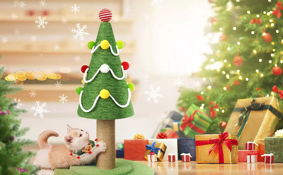 Regalo Ideal: Este rascador con forma de árbol es un regalo de Navidad ideal, ya que es tu salvador de muebles y un juguete recreativo perfecto.