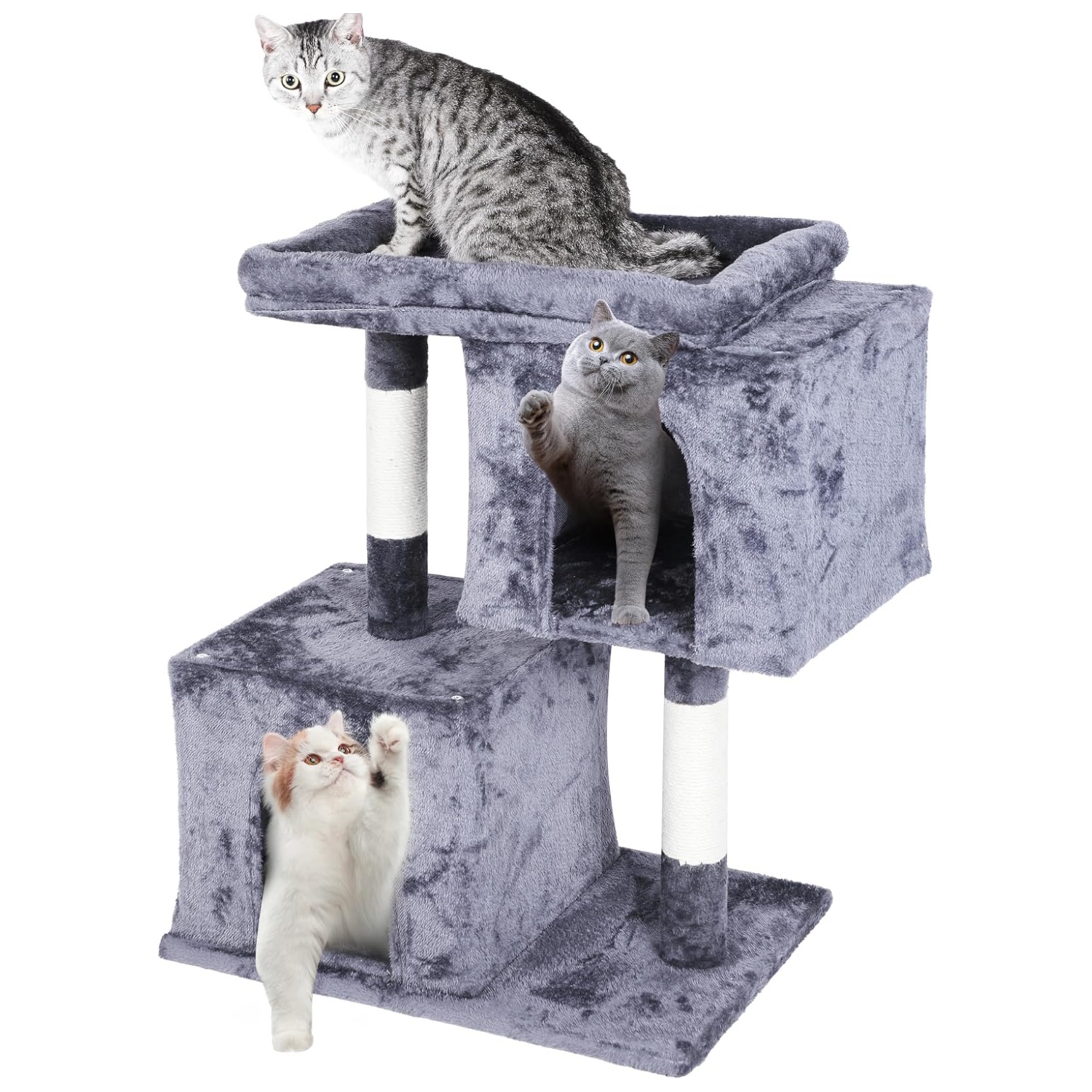 Diseño todo en 1: torre de árbol para gatos de 31 pulgadas de alto. Una combinación de percha suave, plataforma resistente, condominio de lujo y postes rascadores duraderos.