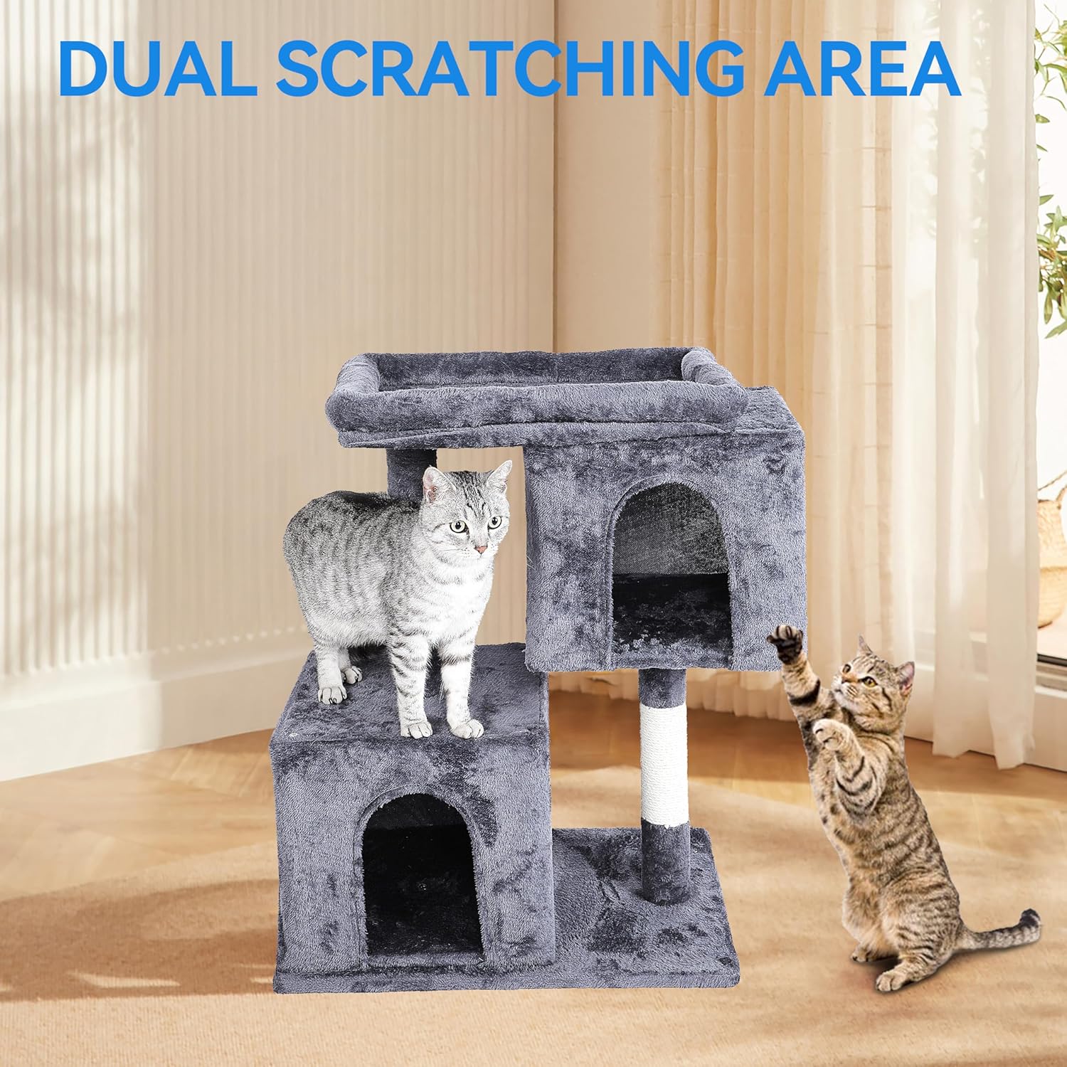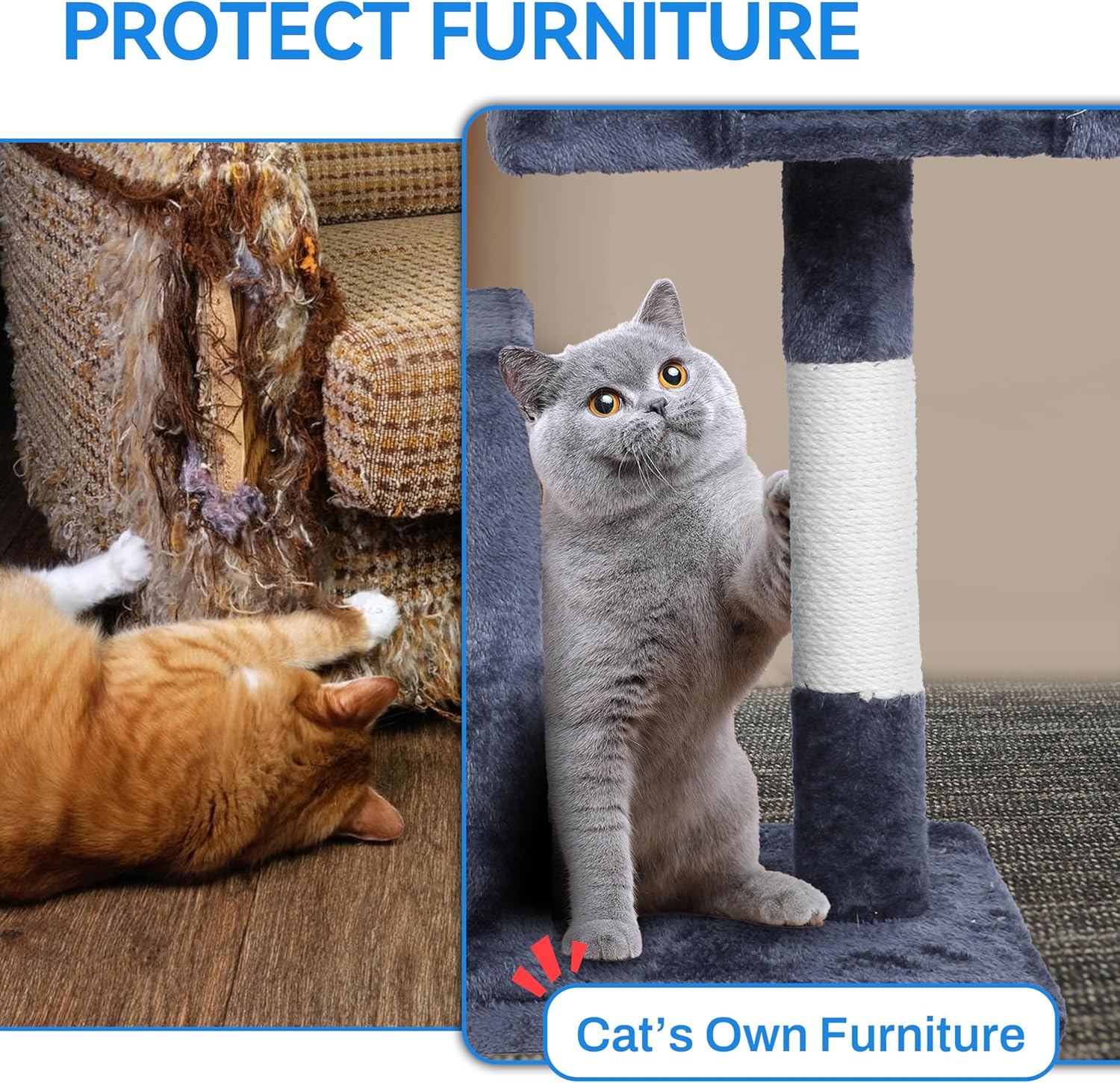 Totalmente rayable: un increíble patio de juegos para gatos atrae la atención del gato de los muebles que se rascan. Levanta el instinto de caza, también protege tus propios muebles de arañazos.
