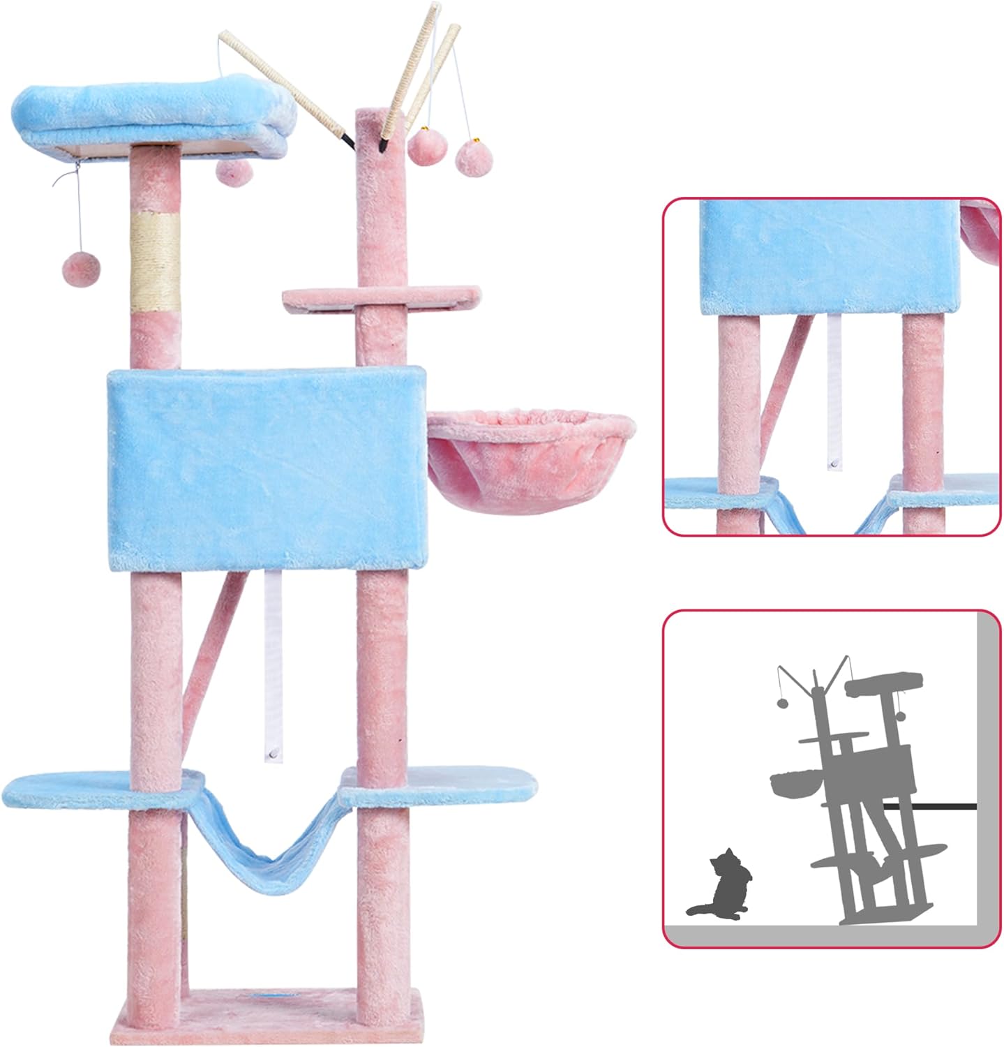 Una acogedora hamaca en forma de canasta es la favorita de los gatos, dando a los gatitos la sensación de estar envueltos, como dormir en una nube suave. La hamaca en el medio de la casa para gatos añade más interés a los gatos curiosos