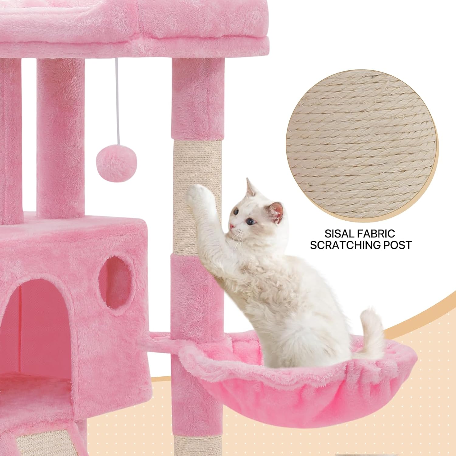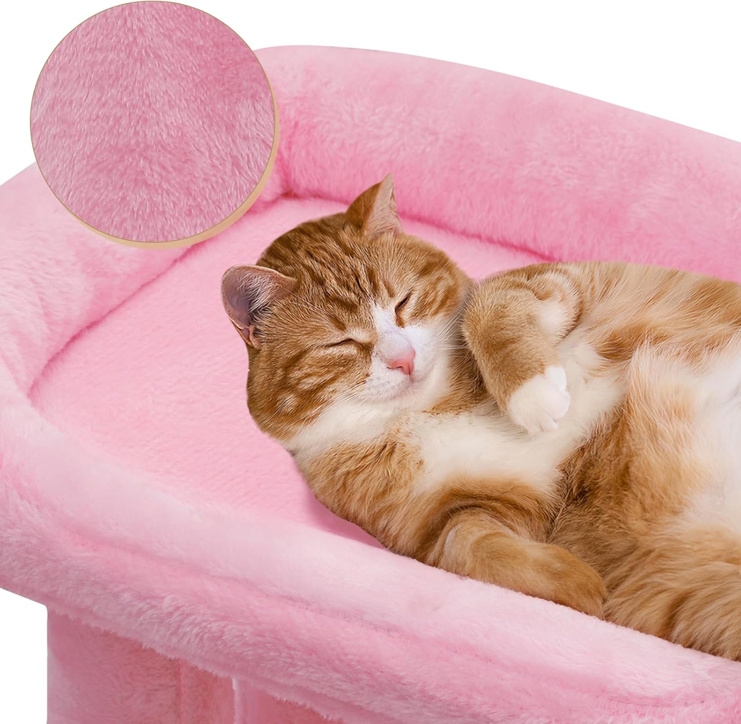 Cozy Sleeping Condo – Incluye un condominio espacioso y cerrado para que los gatos disfruten de la privacidad y tomen siestas tranquilas. Además, lo hemos mejorado con una plataforma redonda y suave, perfectamente diseñada para descansar cómodamente y observar su entorno.