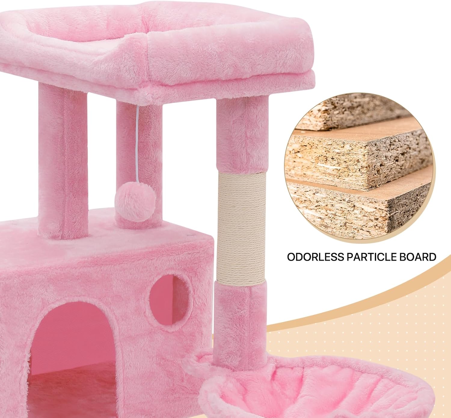 Cubierta de felpa suave: cada plataforma y condominio está cubierto de una tela suave de felpa, ofreciendo una superficie aterciopelada para que tus gatos descansen y se relajen cómodamente.