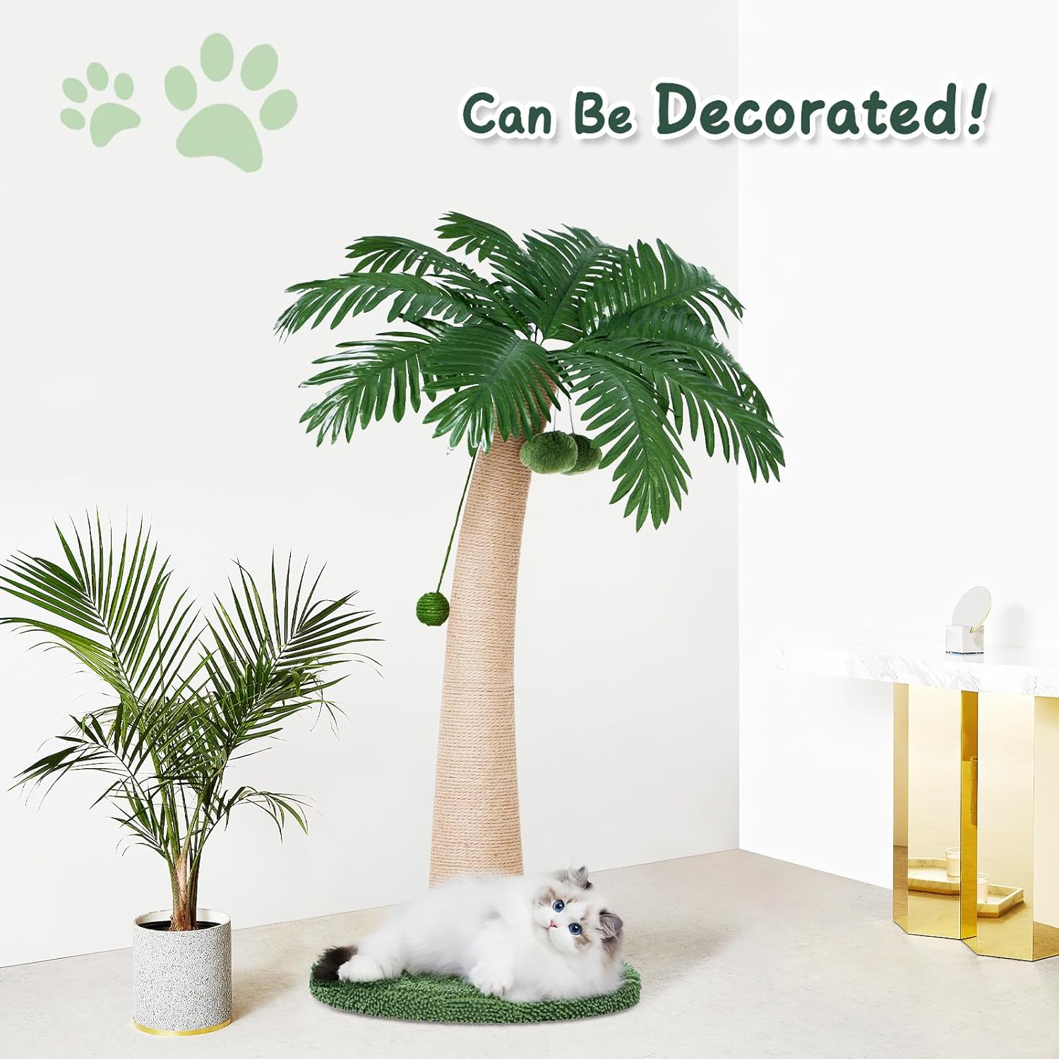 Forma de árbol de coco: el poste rascador Nineshi de 43.3 pulgadas de alto para gatos está diseñado en forma de árbol de coco, que no solo proporciona entretenimiento para tu gato, sino que también decora tu habitación.
