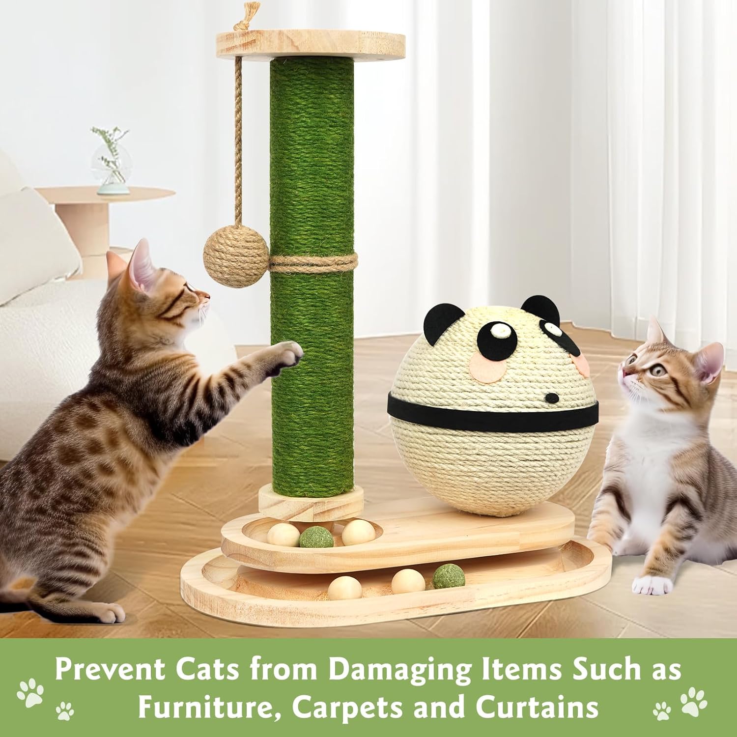Poste rascador para gatos: este rascador interactivo para gatos es una combinación de poste rascador para gatos y juguetes para gatos y cuenta con una bola de sisal rascador de gato en forma de panda, 1 poste rascador de sisal para escalar y afilar garras de gato y 6 bolas de juego para ejercitar el instinto de captura de los gatos. Este rascador involucra a gatitos pequeños y gatos adultos en múltiples niveles de juego, por lo que es útil y divertido