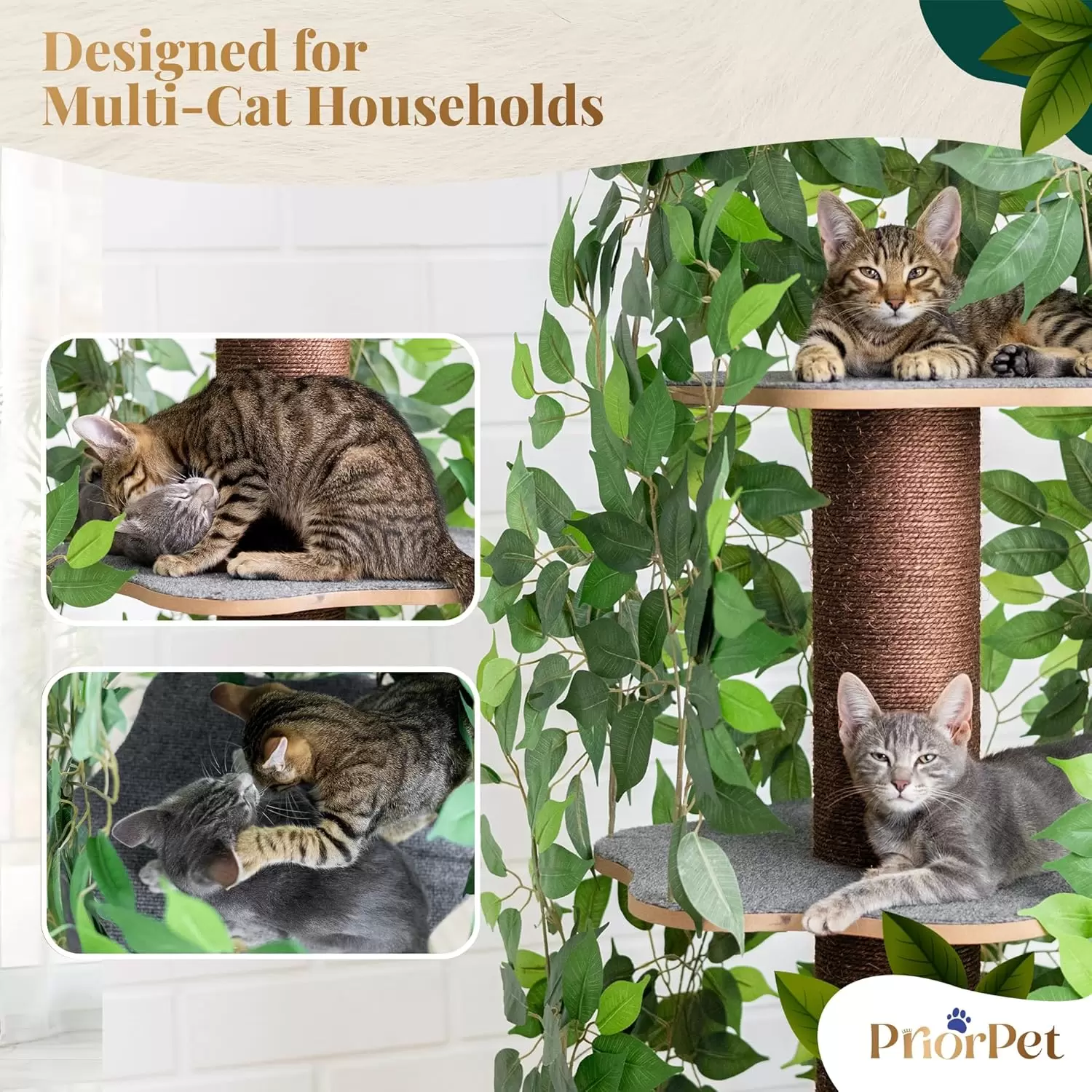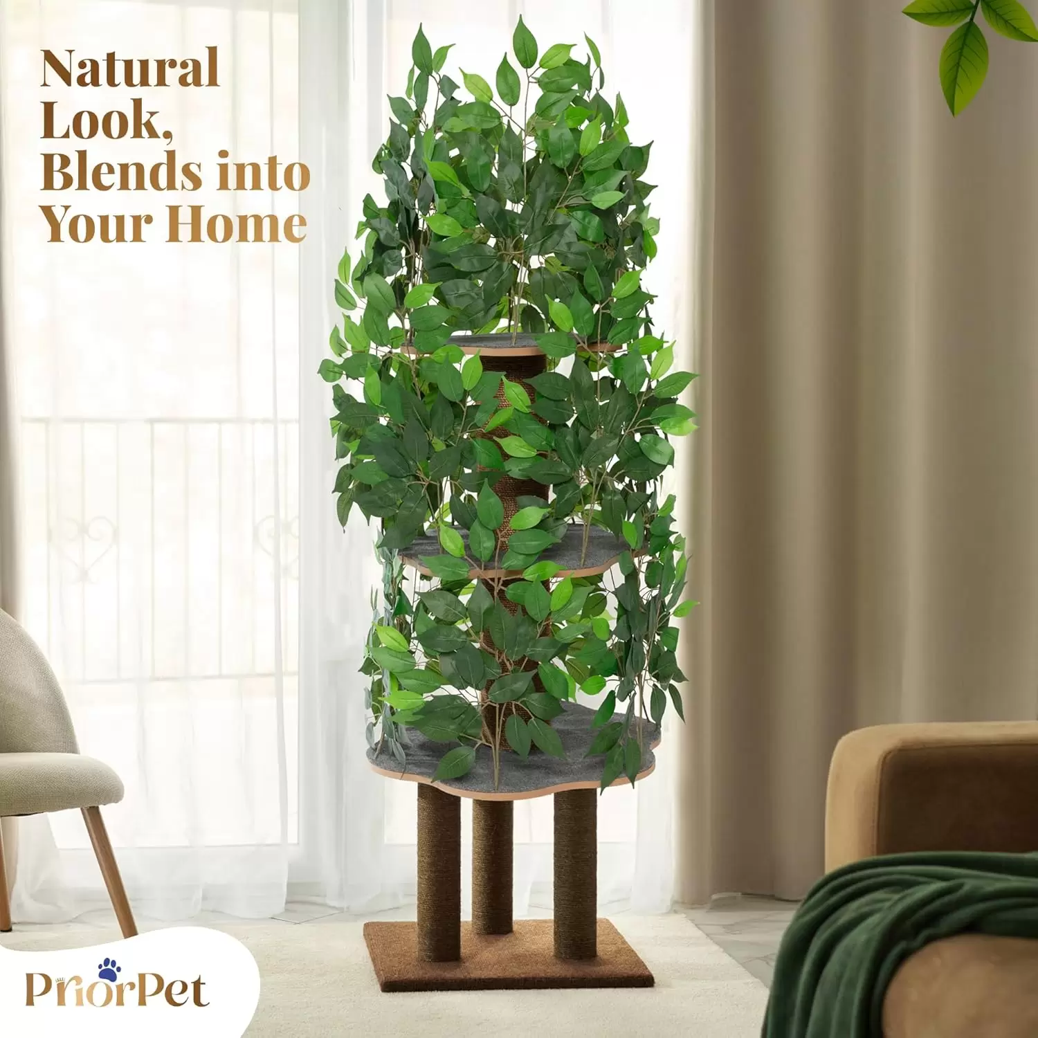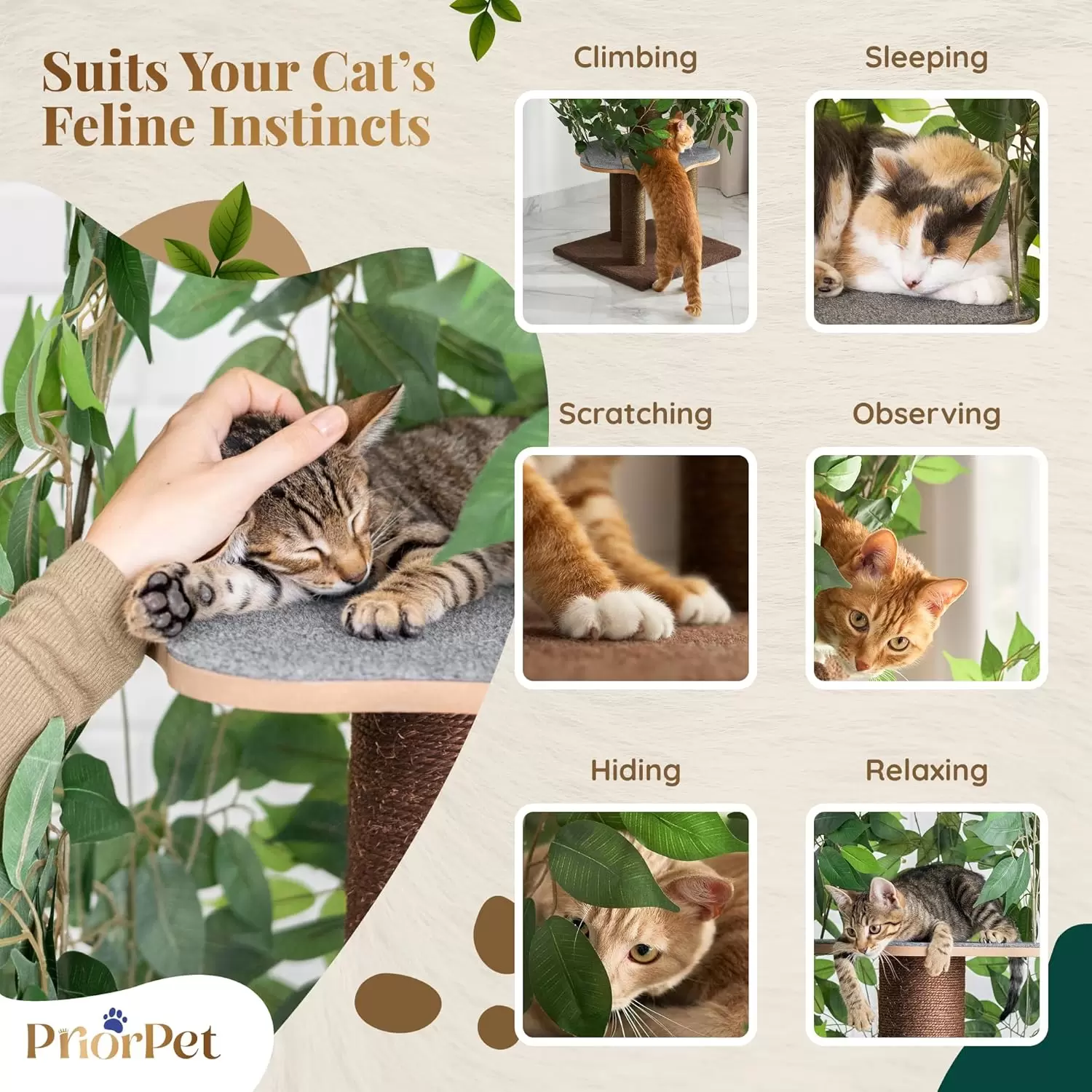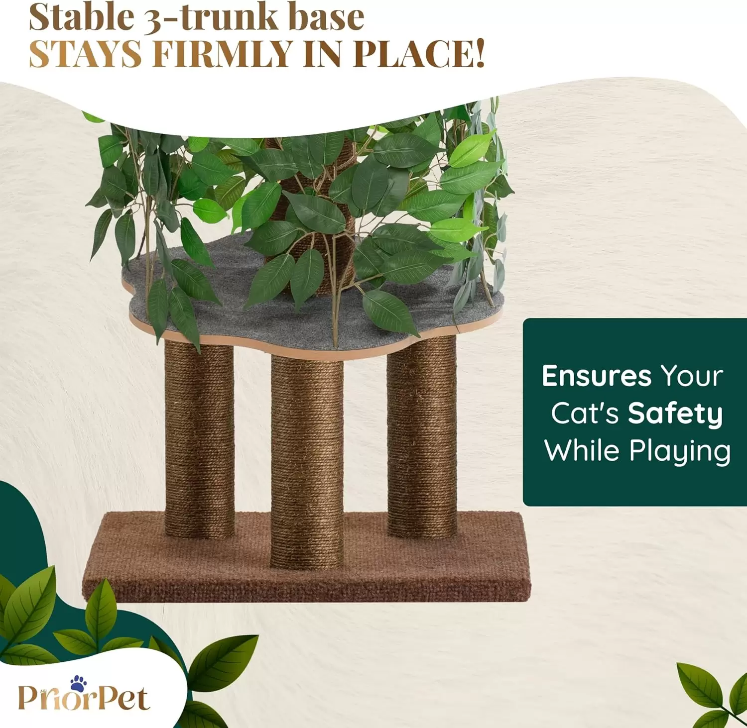 Hojas No Tóxicas: Este elegante árbol para gatos incluye follaje decorativo, duradero y 100% seguro para tu mascota. Es lo suficientemente firme para soportar mordiscos, saltos y arañazos.