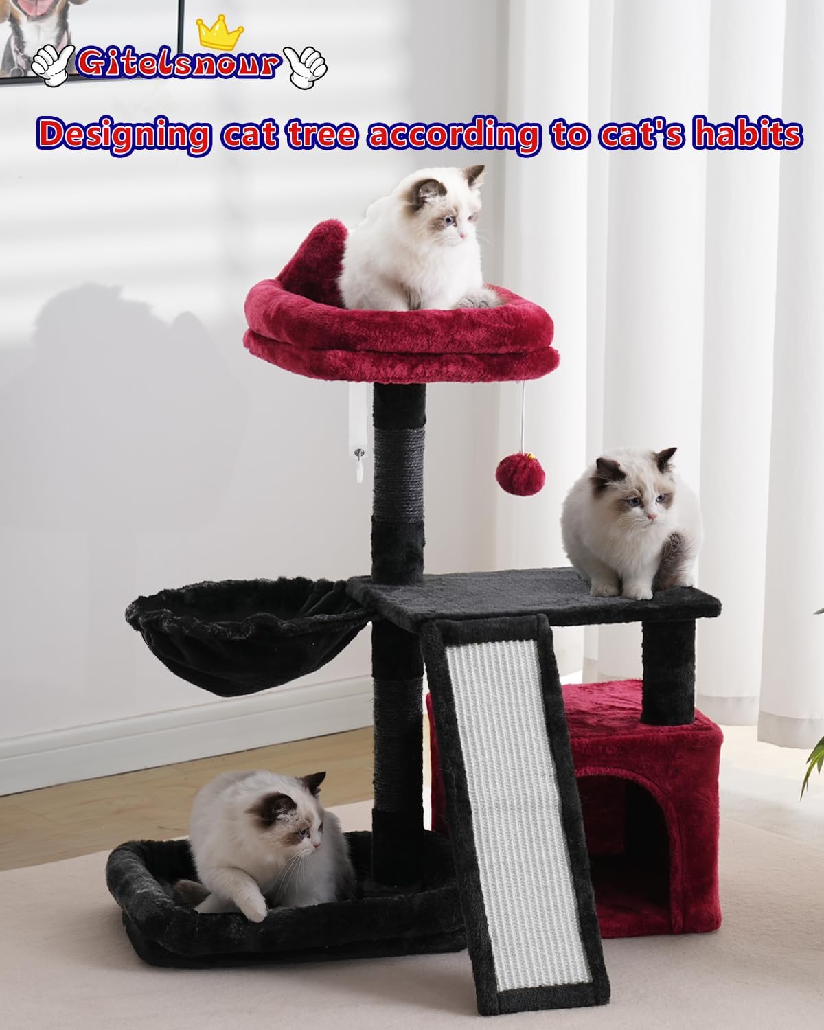 | Componentes incluidos | Árbol para gatos, kit antipuntas, kit de accesorios, instrucciones |