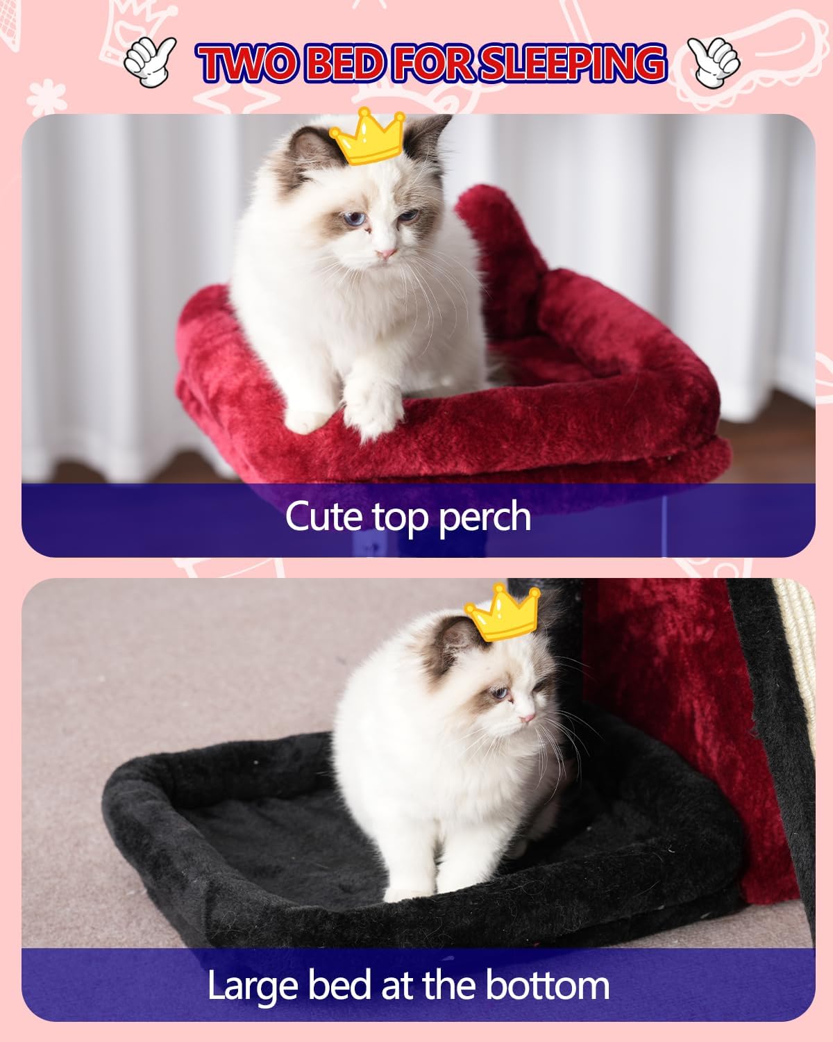 Tomando un buen descanso: los gatos pueden dormir y estirarse en la cama grande para gatos en la parte inferior, descansar dentro de la hamaca redonda y disfrutar de estar completamente envueltos