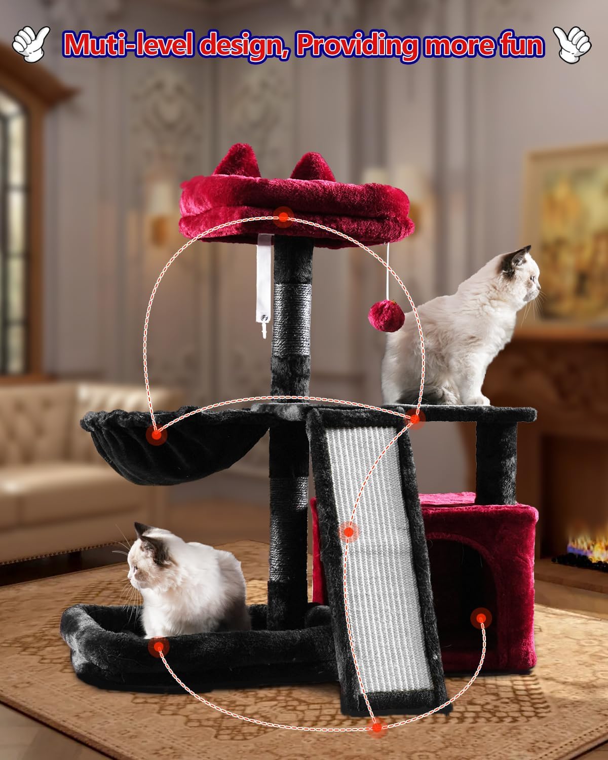 Seguro y fácil de montar: el árbol para gatos viene con instrucciones de instalación claras, todas las herramientas que necesitas y un kit anti-puntas, te ayuda a construir rápidamente la casa para gatos y garantizar que sea estable