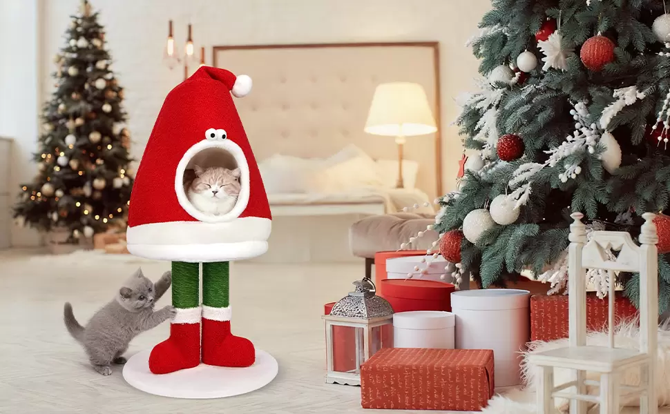 ¡Un regalo perfecto para tu gato y tu hogar! Este Rascador y Cama 2 en 1 combina la funcionalidad con un hermoso diseño navideño que atrae la atención de tu gato y estimula su curiosidad. Es una bonita decoración que crea un ambiente festivo y satisface el rascado natural de tu gatito.